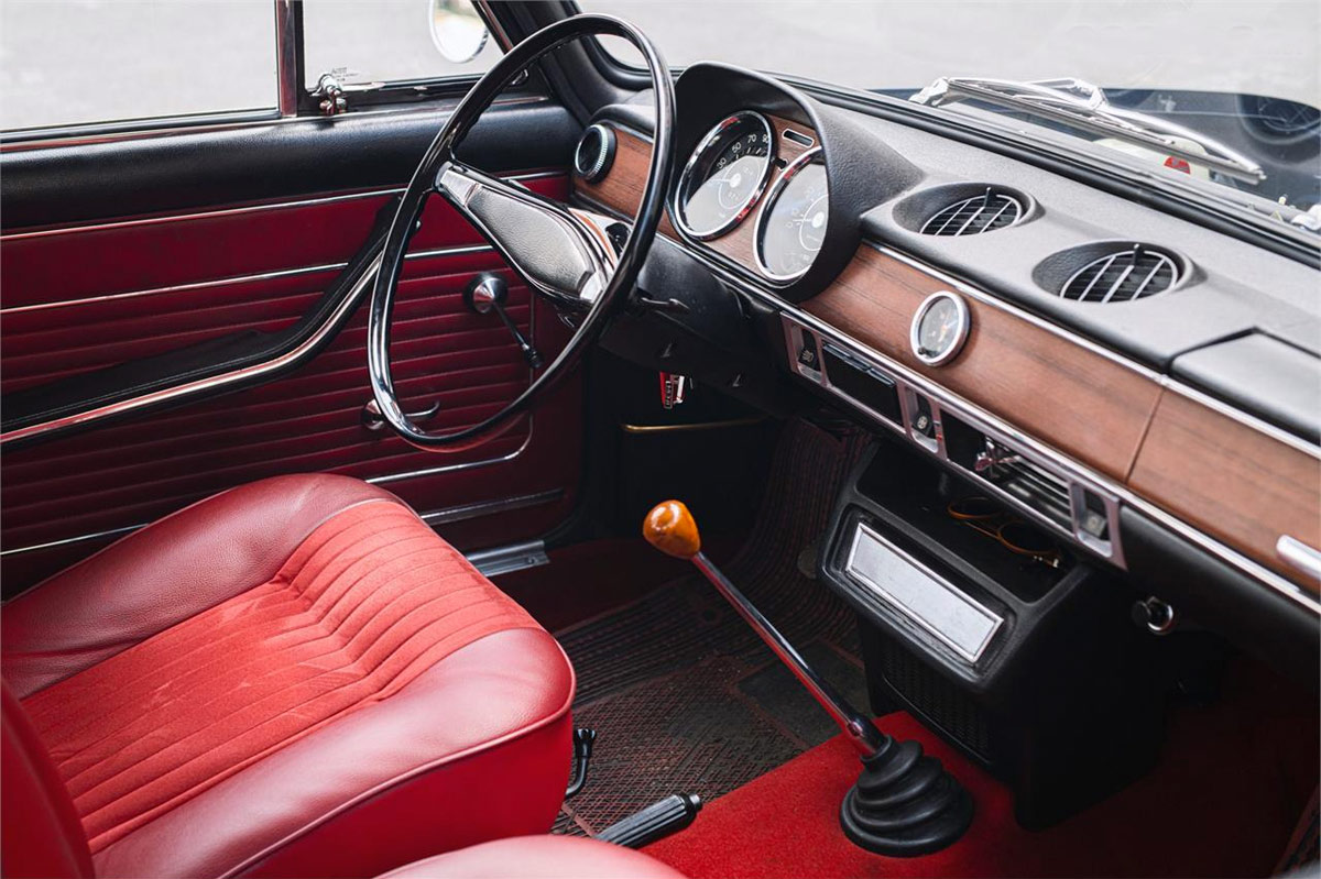 Giramos la llave –el claúsor está a la izquierda de la columna de dirección– y el 1430 arranca sin titubeos, a la primera. Salimos a carretera abierta donde comprobamos que la posición de conducción es realmente cómoda y la visibilidad general buena, aunque se agradecería contar con retrovisor derecho. La dirección de tornillo sin fin, que resulta un tanto dura en parado, no lo es marcha y ni siquiera resulta imprecisa si estamos acostumbrados a conducir coches de la época. Las marchas se engranan con total facilidad y nos permiten aprovechar un motor que siempre fue un prodigio de elasticidad. No es un cohete, pero sí acelera con decisión, permitiéndonos circular en el tráfico actual con total seguridad. Recordemos que aunque solo cuenta con 70 CV, estos han de mover apenas 980 kilos incluido el conductor.