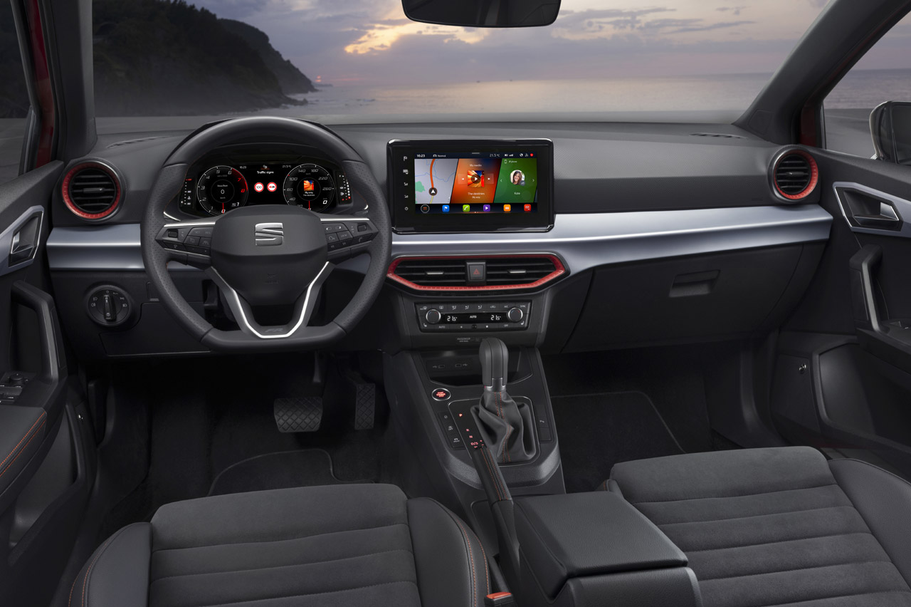 En el habitáculo me encuentro con el rediseñado salpicadero, que transmite una mayor sensación de calidad y solidez, con materiales agradables al tacto. Las salidas de aire, que también son nuevas, tienen detalles en rojo y están iluminadas, mientras que el volante proviene directamente de su hermano mayor, el SEAT León.