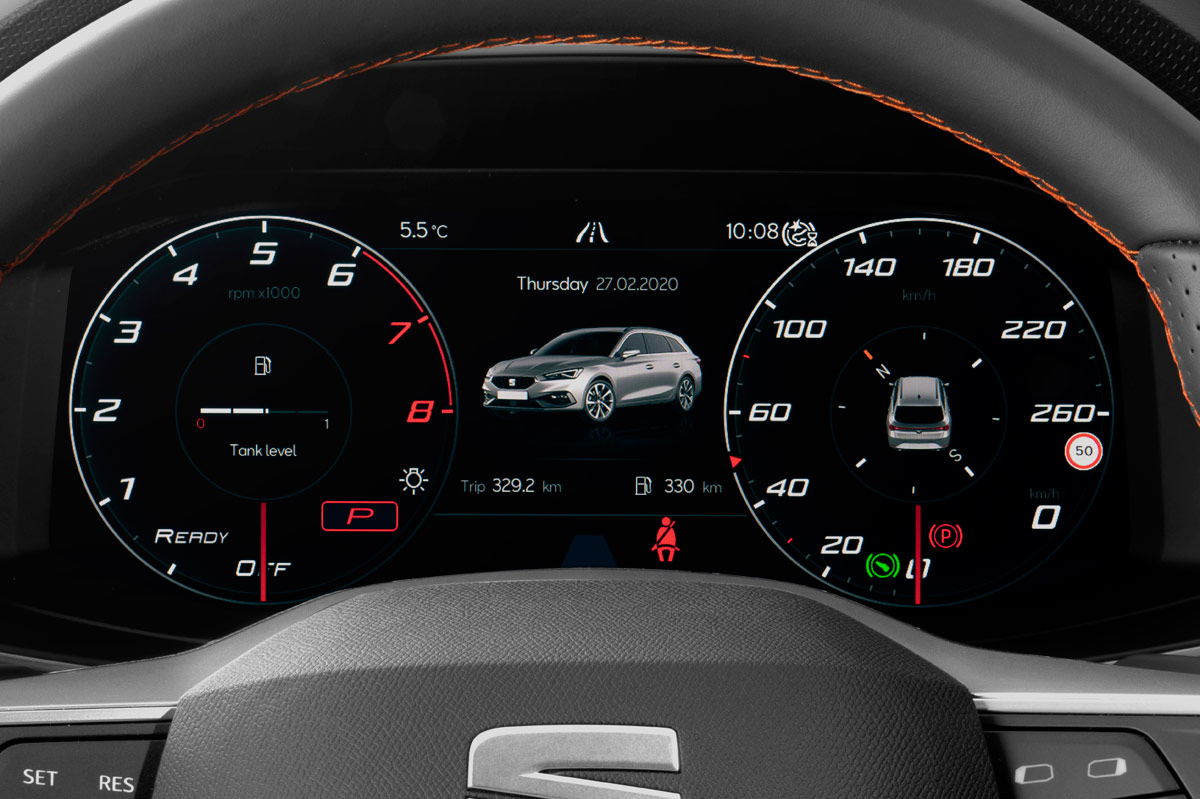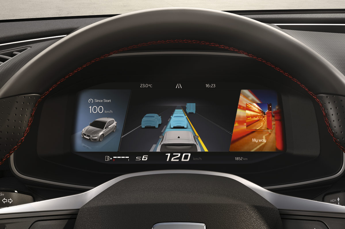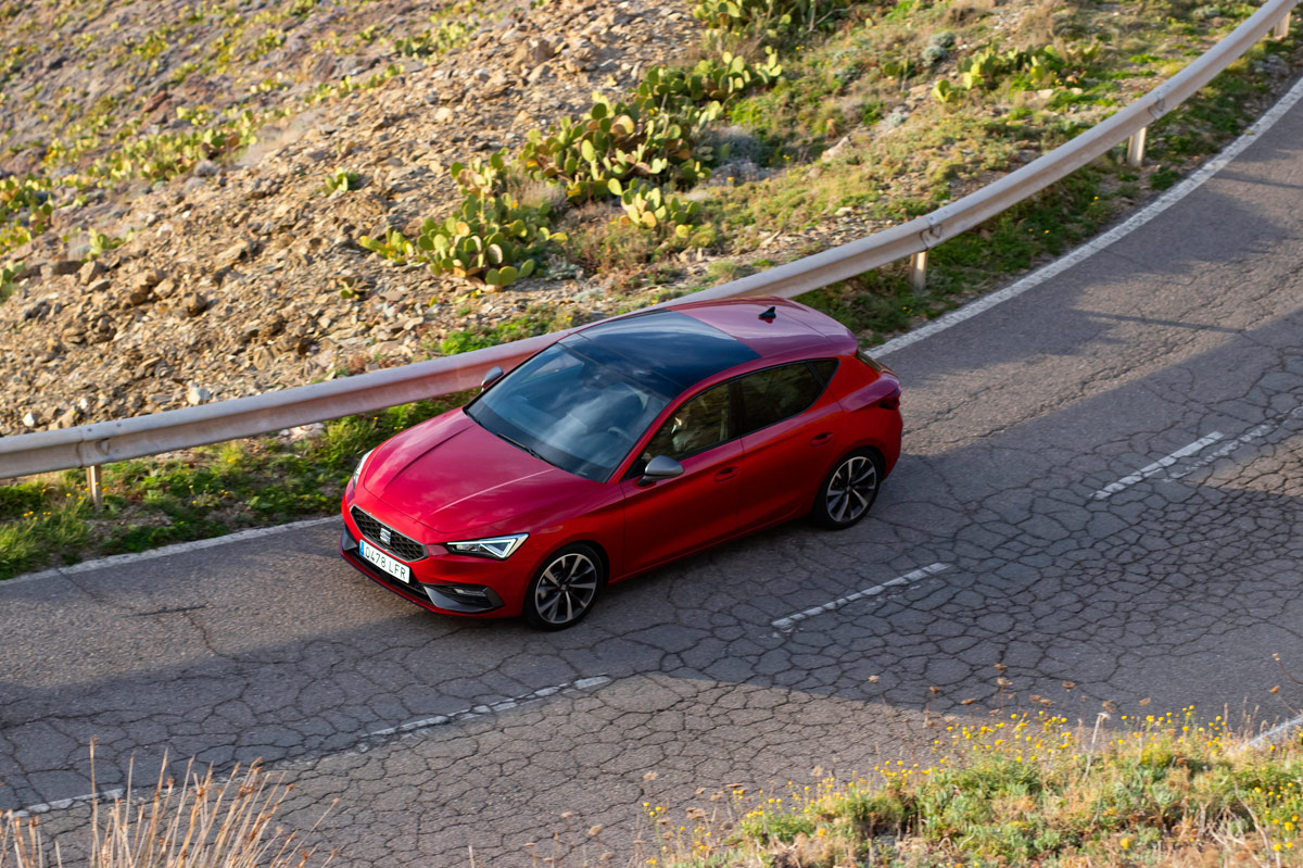 Pero lo que más me ha gustado del nuevo León no es su propulsor, que por funcionamiento y consumo -el oficial es de 5,5 l/100, pero durante la prueba, siempre en modo Sport y exigiendo al motor el máximo he obtenido un fantástico 6,7 l/100-, sino sus maneras en marcha. Si la anterior generación iba realmente bien, esta va de cine. En el primer tramo de curva ahuyento todos mis temores. La nueva plataforma ha aumentado un 11% la rigidez, hecho que ayuda a que el coche tenga un comportamiento excelente en los virajes. Puedes entrar muy rápido, y lo mejor de todo, con total seguridad; la seguridad que imprime una dirección comunicativa y de tacto que por peso roza la perfección y una suspensión totalmente configurable. El nuevo León equipa el SEAT Drive Profile, hasta ahí nada nuevo, con los modos Eco, Normal, Sport e Individual. Este último te permite variar la dureza de la suspensión en quince niveles, ¡quince!, que junto a las opciones de la dirección, la respuesta del motor y la velocidad del cambio, siempre que sea un coche con transmisión automática, permite tener un coche al gusto del conductor. ¿Qué el modo Sport no te parece lo suficientemente deportivo? Pues suspensión a tope de dureza y consigues un coche aún más dinámico. Y es que así logras que la carrocería apenas ofrezca balanceos, a lo que me pregunto... ¿Cómo será el nuevo Cupra León? En mi último tramo quiero más comodidad, por lo que activo el modo Comfort y la suspensión se ablanda, filtrando mejor las irregularidades de la calzada.