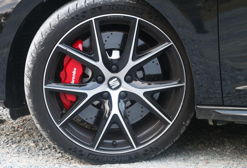 El coche se ve mejor, apoyado en otro elemento clave novedoso: las llantas de 19 pulgadas derivadas del Cupra R, pero, en esta ocasión, terminadas en un bonito acabado negro diamantado. Si a ello le sumas los grandes discos de freno y las enormes pinzas pintadas en rojo obra de Brembo, el resultado estético no puede ser mejor. ¡Ah, se me olvidaba! No hay que menospreciar el nuevo sistema de escape, con cuatro salidas terminadas también en color negro y que te dicen que estás ante algo importante.