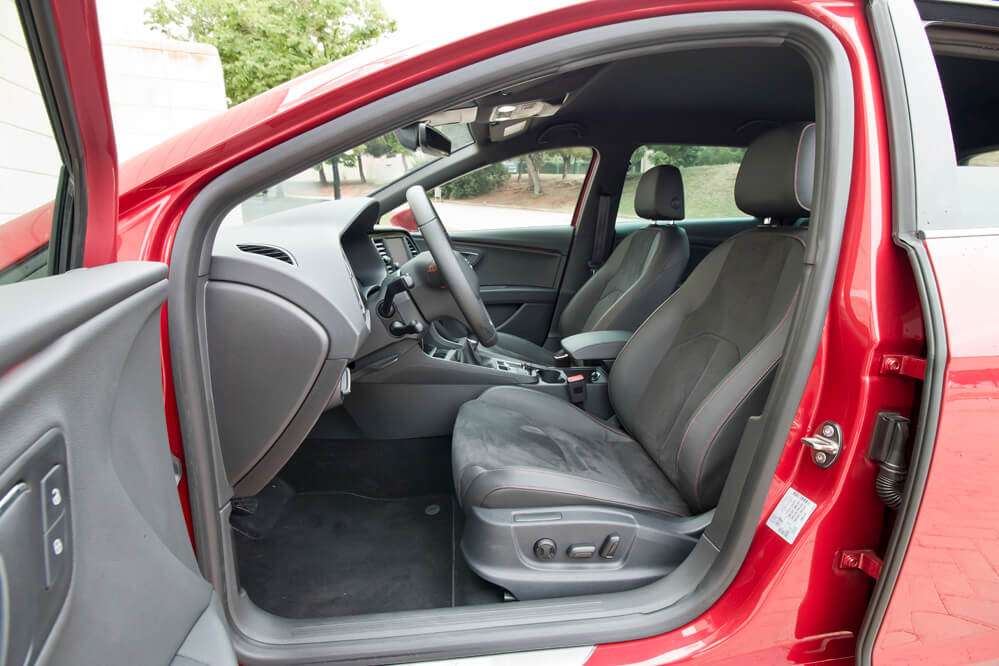 Pero bueno, vamos a empezar por el principio: arranco la prueba del SEAT León ST 2017 2.0 TDI 184 CV echando un vistazo al exterior. Como decía, pocos cambios a la vista. En las imágenes puedes ver algunas novedades de este restyling, como los faros heredados del Ateca, SUV que ya hemos probado, los nuevos pilotos con tecnología completa de LED, el nuevo color ‘Rojo Desire’, o las llantas Performance de 18 pulgadas. Estéticamente pocas pegas se pueden poner, ¿no te parece? El nuevo paragolpes de la versión FR le da un punto extra de agresividad, el nervio se mantiene en tensión durante todo el lateral y en la parte trasera el difusor, con la doble salida de escape cromada, pone la guinda. Más que correcto.