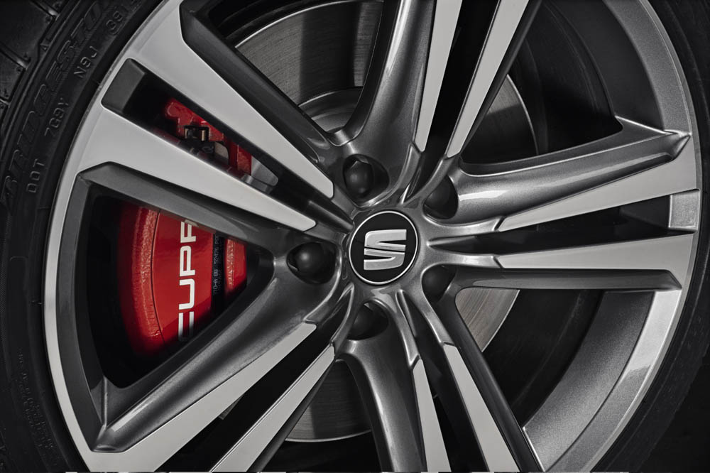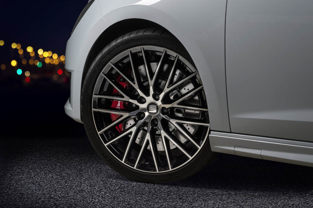 Las características deportivas del SEAT León ST Cupra pueden incluso ampliarse gracias al Paquete Performance, que es opcional. Incluye un sistema de frenos Brembo de cuatro pistones con discos delanteros perforados de medida 370 x 32 mm, llantas de 19” (en color Negro y Naranja). Otra de las novedades son los paquetes ‘Line’ de colores exclusivos.