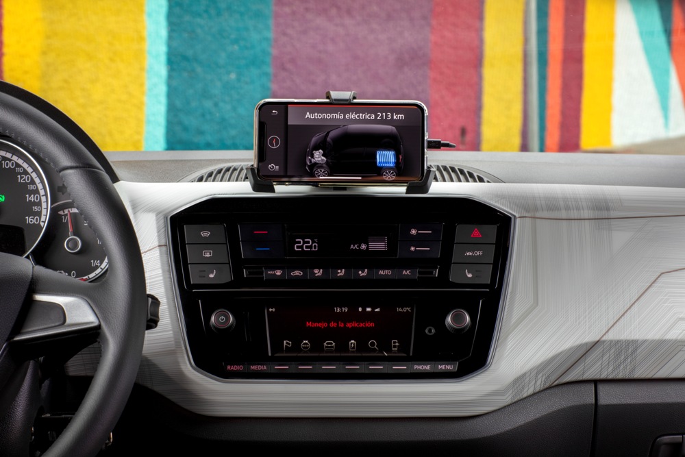 Los diseñadores de SEAT han tomado el Mii y lo han ajustado a las exigencias de un coche eléctrico. Incluso la toma de carga la encuentras bajo la tapa donde se encontraba la boca de repostaje para el depósito de gasolina. Lo mismo ocurre con el interior. El Mii eléctrico equipa una nueva moldura decorativa que recorre todo el ancho del salpicadero, un sistema de iluminación ambiental y una tapicería específica.