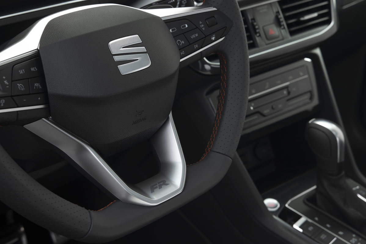 Ya en el interior, destaca el volante deportivo el logotipo FR, en cuero como la palanca de cambios; el pedalier en aluminio o el cuadro de mandos Digital Cockpit en lugar del de agujas analógicas. Pero los verdaderos protagonistas son los asientos deportivos de tipo baquet, que dan un toque racing a la cabina por su diseño, incrementan la calidad por su manufactura y, además, garantizan una excelente sujeción.