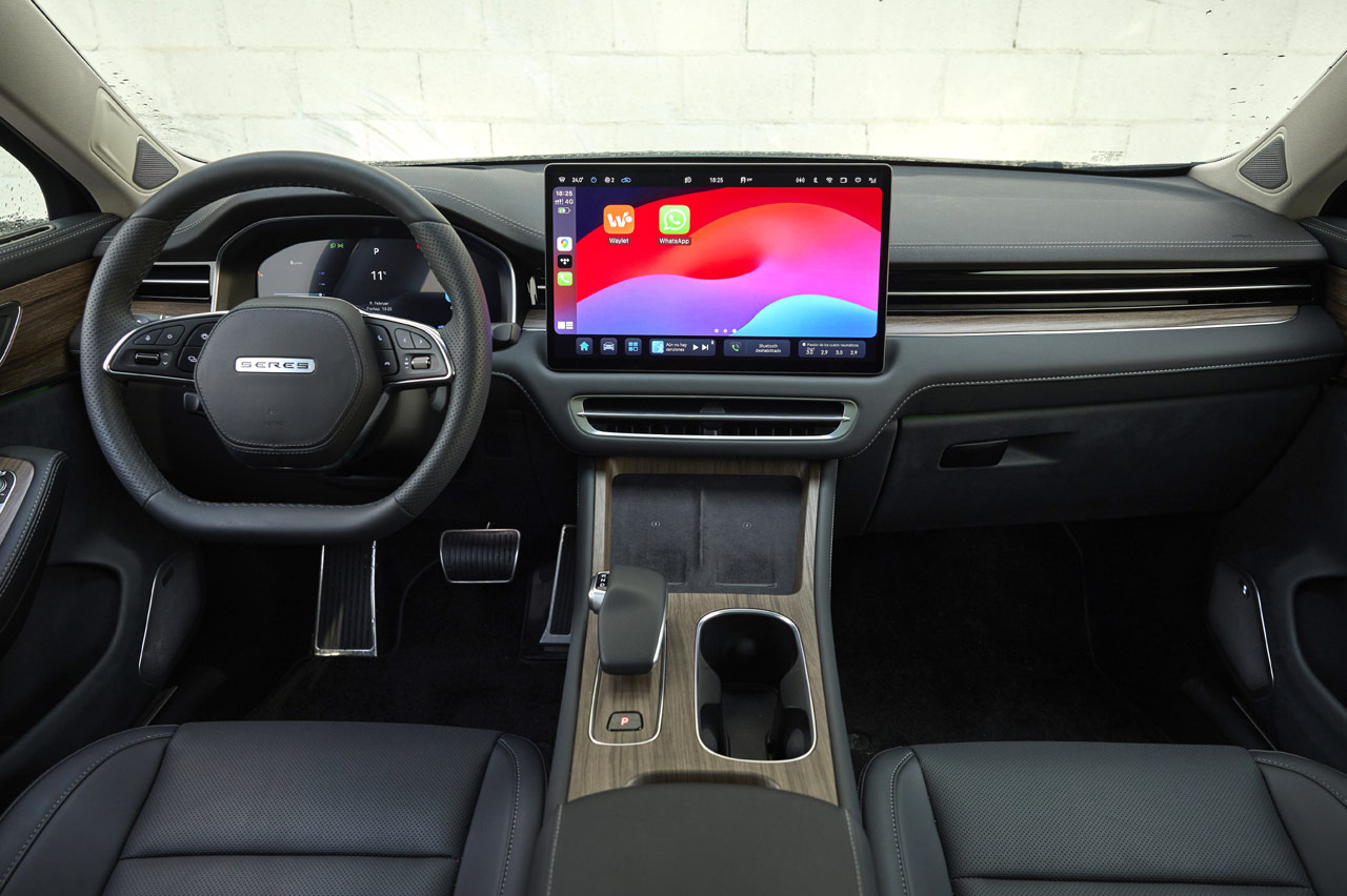 Mi primera experiencia en marcha con este Seres 5 fue desde el asiento del copiloto. Nunca antes había visto el coche ni por dentro ni por fuera y lo cierto es que me sorprendió mucho. El diseño exterior, especialmente la vista lateral, me pareció muy dinámico y me dejó claro que no estaba ante un SUV más. Y el habitáculo es igualmente aparente, con materiales vistosos y unos ajustes muy buenos.