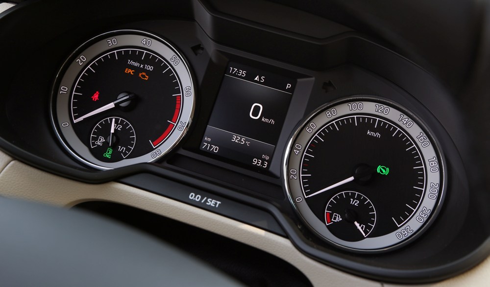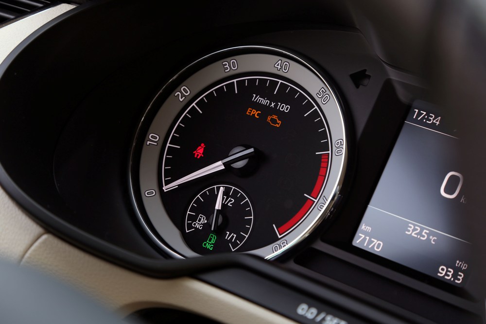 En el interior se aprecian algunos cambios más, pero son tan sutiles como los del exterior. El sedán familiar de Skoda pierde el medidor de temperatura del líquido refrigerante en el cuadro de instrumentos en detrimento de un indicador de carga del depósito de GNC, añade algunas funciones al ordenador de a bordo para el consumo medio, la calidad del gas y la autonomía combinada entre gasolina y GNC, y nos permite buscar estaciones de servicio con el navegador a través de la pantalla táctil de 8 pulgadas del sistema multimedia.