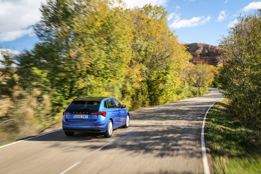 A pesar de los obstáculos que esta plataforma puede presentar para competir en primera división, el Scala es un coche más grande que sus compañeros de grupo, con cotas más propias de un segmento C. Tiene 4.362 mm de longitud, 303 mm más largo que un Ibiza e incluso 78 mm más que el nuevo Golf VIII. Estas medidas permiten al fabricante con sede en Mladá Boleslav hacer honor a su filosofía Simply Clever y ofrecer un vehículo con un interior espacioso y un maletero de 467 litros, uno de los mayores en su segmento.