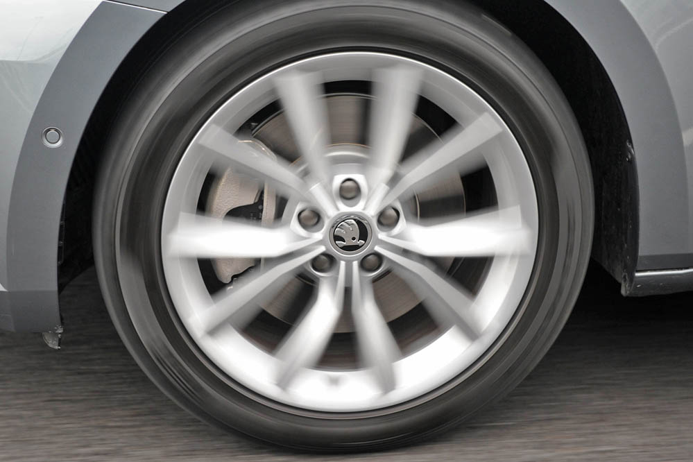 Las grandes ruedas y los marcados pasos enfatizan el aspecto exclusivo. La zaga es poderosa gracias, en parte, a las múltiples líneas horizontales. La orientación es firme y clara. Los pilotos se expanden hacia el exterior, pasando de una forma más estrecha a una más ancha. Brillan gracias a la tecnología LED, de serie, que proyectan la típica forma de C de los últimos modelos de Skoda. Asimismo, las luces traseras, gracias a elementos cristalinos, emiten un esplendor adicional.