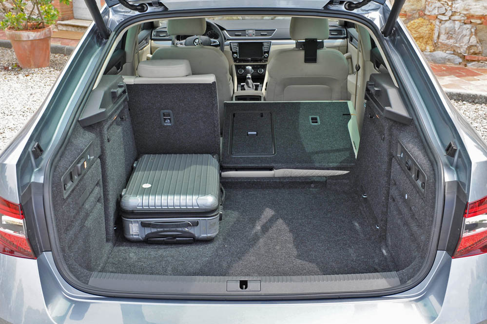 El volumen del maletero ha aumentado otra vez. Los 625 litros exponen que puede acoger la friolera de 30 más que la segunda generación del Superb, siendo el mejor valor de la clase media. Si se abaten los respaldos de los asientos traseros, acción que se puede realizar desde el mismo espacio de carga, la capacidad asciende a unos impresionantes 1.760 litros. Tiene 1.167 mm de largo y 1.082 mm de ancho, con lo que los objetos más grandes podrán entrar cómodamente, entre otras cosas porque el portón trasero abierto brinda un espacio de 1.868 mm de alto. También, porque el umbral de carga tiene una altura de 711 mm - el mismo valor que antes-. Aquellos que quieren ver las debilidades reales del nuevo Superb, tardarán en encontrarlas.
