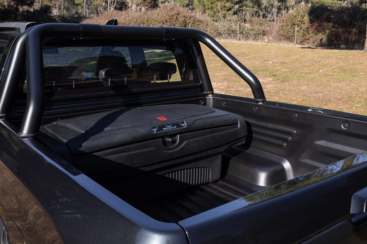 En el eje trasero, sin embargo, han optado por una configuración más sencilla que la del SUV para favorecer la robustez y la capacidad de carga. Me refiero a un eje rígido con ballestas como elemento elástico, un elemento fundamental y muy demandado en las pick-up destinadas a uso profesional. Pero la cosa no termina ahí.