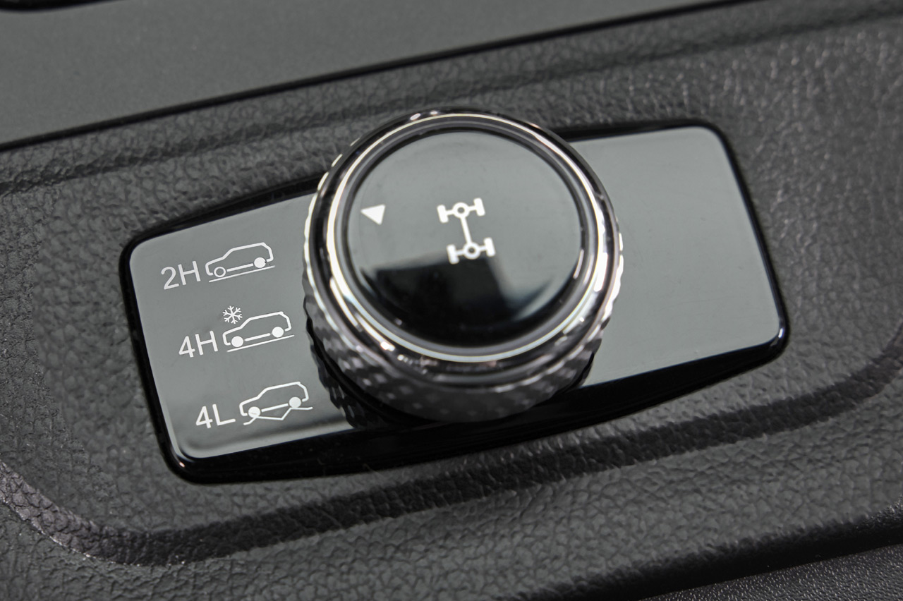 En cuanto al sistema de tracción, nos encontramos ante una solución clásica entre las pick-up: tracción total conectable sin diferencial central. Esto significa que en condiciones con buena adherencia tendrás que circular en modo 2H mandando la potencia a las ruedas traseras. Y cuando el firme sea resbaladizo, podrás activar el modo 4H en el que ambos ejes reciben por igual un 50% de la potencia.