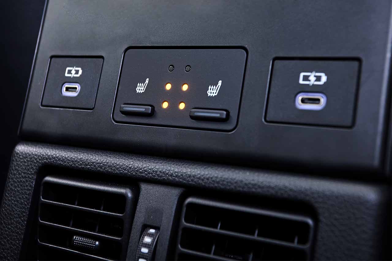 Huecos, quitando la mencionada guantera, no le faltan, con bolsillos en las puertas y bajo el reposabrazos central, o incluso en la zona que hay bajo la consola que aglutina la mayoría de los controles principales. En cuanto a los asientos, son muy cómodos y tienen regulación eléctrica, así como climatización. Un punto importante es que para la climatización cuenta con bomba de calor de serie en toda la gama.