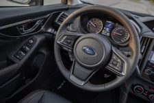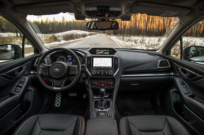El acabado Sport Plus añade cámara de visión trasera, faros delanteros y traseros LED con función adaptativa los delanteros, retrovisores eléctricos plegables, ventanillas traseras tintadas, barras de techo, pedales de aluminio, volante y palanca de cambios forrados en cuero con costuras naranjas, espejos de cortesía para conductor y acompañante, reposabrazos trasero con dos posavasos, climatizador dual con filtro antipolvo con ajuste por voz, pantalla central de 8” con equipo de audio con 6 altavoces, sistema de información y entretenimiento Subaru Starlink, doble puerto USB y display multifunción con pantalla LCD de 6,3”.