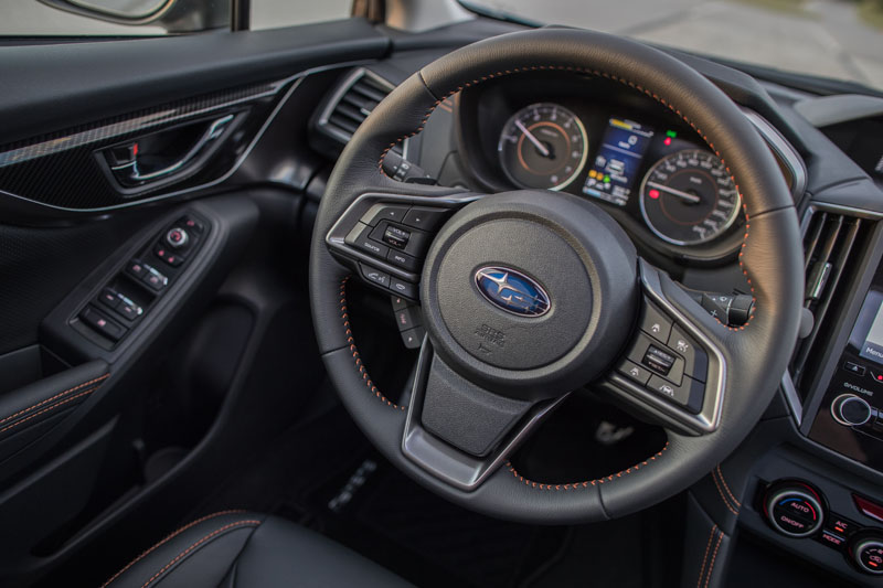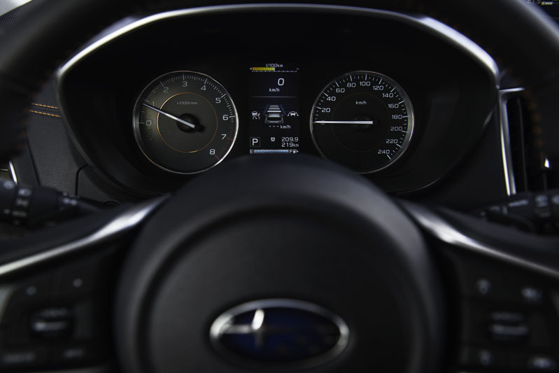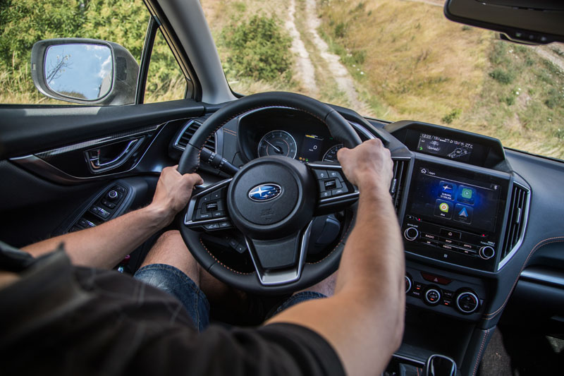 Ante los ojos del conductor destaca el nuevo volante multifunción, que está forrado en piel y cuenta con un diámetro ligeramente menor que antes -de 375 mm se ha pasado a 370 mm-. A diferencia de otros modelos de la competencia, Subaru se desmarca, con muy buen criterio, para ofrecer un interior sencillo, muy funcional y fácil de utilizar. Gracias a ello, no encontramos engorrosas pantallas táctiles para manejarlo todo. Sí que es cierto que quedan muy bien de cara a la galería, pero terminan siendo una pesadilla para gestionar hasta la función más sencilla. En el Subaru XV 2018 de la prueba encontramos un cuadro de instrumentos tradicional que se lee a la perfección y que presenta los relojes físicos habituales, y una pequeña pantalla multifunción que viene a completar toda la información de vehículo. En la parte alta del salpicadero, culminando la consola central, hay una pantalla de 8 pulgadas que destaca por su funcionalidad y fácil manejo. Por último, los mandos de la climatización, que se sitúan justo debajo de esta pantalla, son giratorios y de generoso tamaño para que se pueda acceder muy bien a ellos y para que el manejo sea rápido y eficaz.