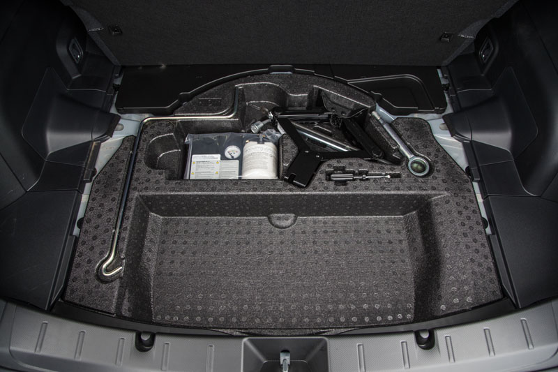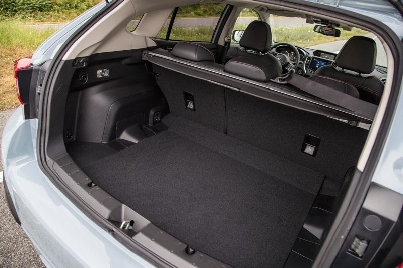 El maletero también sale beneficiado de este crecimiento a lo ancho, con 7 mm más en la zona de carga. No obstante, es muy importante destacar que el rediseño del portón trasero trae consigo una ventaja adicional importante: la anchura disponible para introducir objetos en él es ahora de 1.039 mm (+9 mm) en su punto máximo y de 1.034 mm (+100 mm) en la base de carga. La capacidad del maletero del Subaru XV viene determinada por el tipo de rueda de repuesto; en caso de escoger un neumático normal, se conservan los 310 litros con los respaldos traseros en su posición normal y 765 litros (+24 litros) con los respaldos abatidos. En caso de llevar una rueda de emergencia, hay 345 litros disponibles (+5 litros) o 795 (+24) con los respaldos abatidos. Por último, con un kit antipinchazos, la capacidad es de 385 (+5) o de 835 (+24 litros). Por supuesto, el respaldo de los asientos traseros es abatible por partes asimétricas 60/40.
