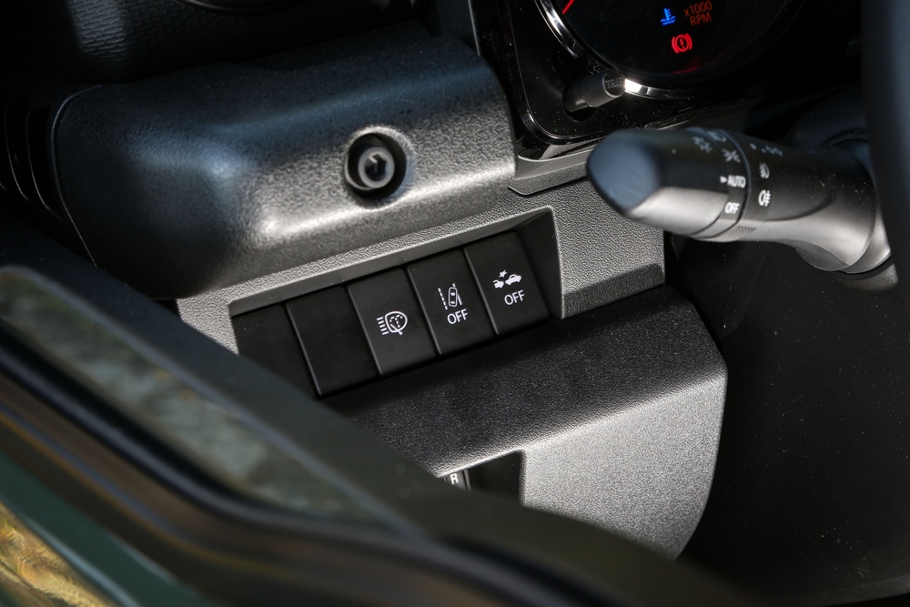 El mencionado control de tracción del Suzuki Jimny funciona bien en líneas generales, pues permite que el modelo pueda superar con facilidad situaciones en la que uno o más neumáticos quedan en el aire. Si bien, su funcionamiento es brusco y actúa bastante tarde. Un ejemplo: cuando afrontas un cruce de puentes a muy baja velocidad, transcurren unos instantes desde el momento en el que una de las ruedas queda en el aire y el sistema detecta y determina que debe aplicar fuerza de frenado sobre esa rueda.
