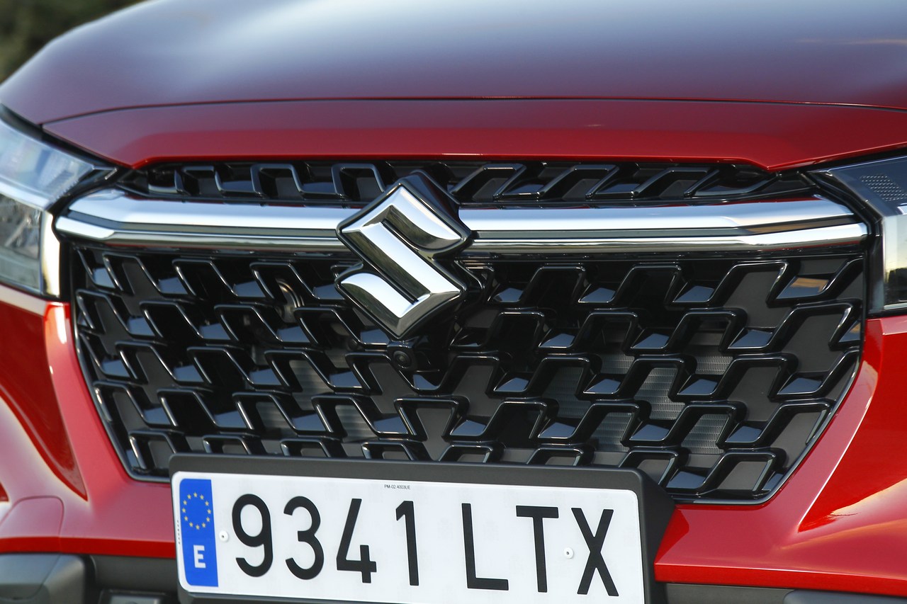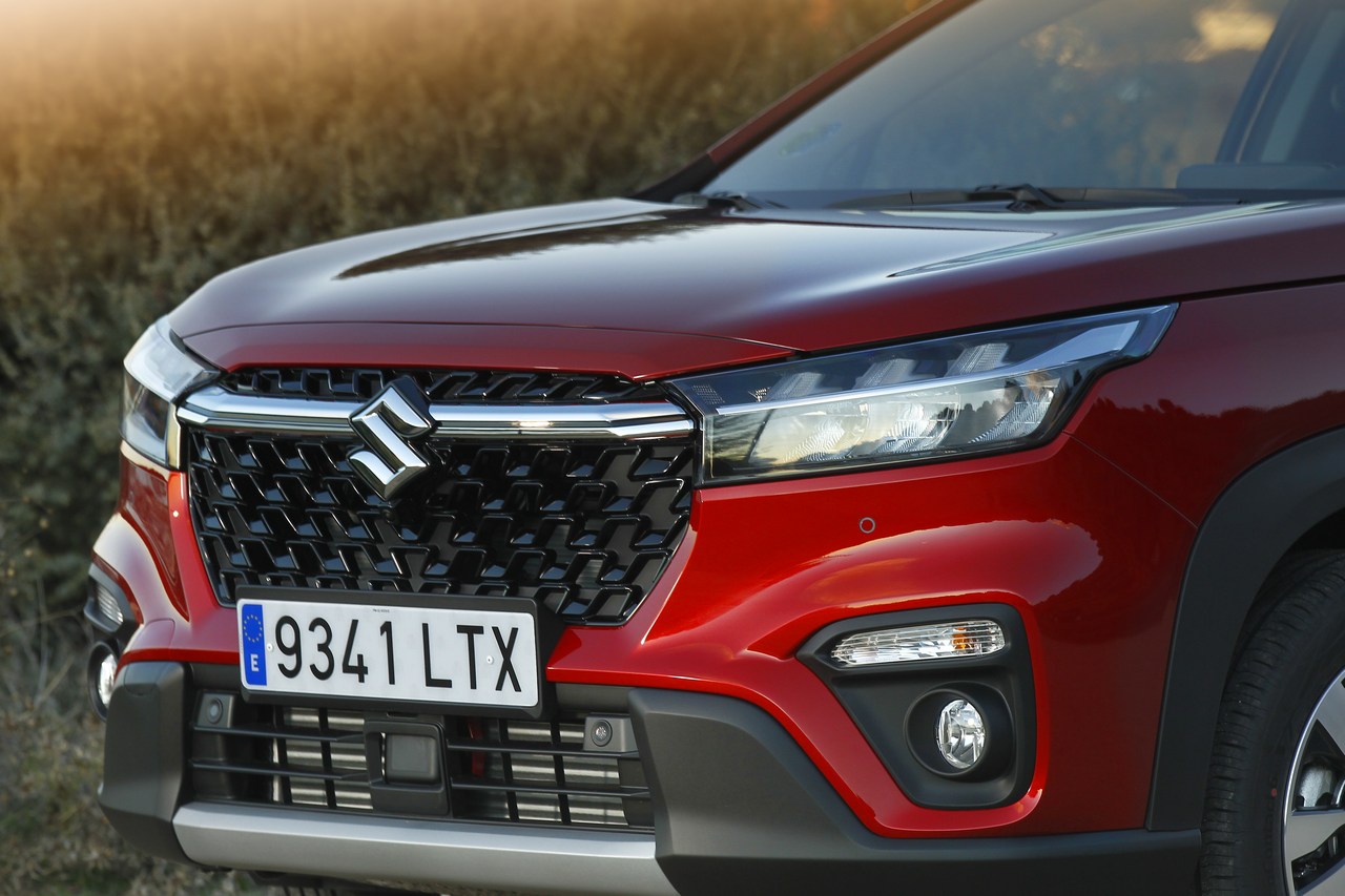 Los profundos cambios que ha experimentado el Suzuki S-Cross 2022 que pruebo afectan tanto a su exterior como al interior, además de al equipamiento. Su carrocería hereda rasgos estéticos de algunos de los últimos lanzamientos de la marca, como el (prueba) Suzuki Across. En el frontal, por ejemplo, destaca la gran parrilla octogonal con un prominente listón cromado que da soporte al logotipo de la marca. En los extremos de esta hay unos faros totalmente rediseñados, con tecnología de ledes, y debajo una moldura metalizada.