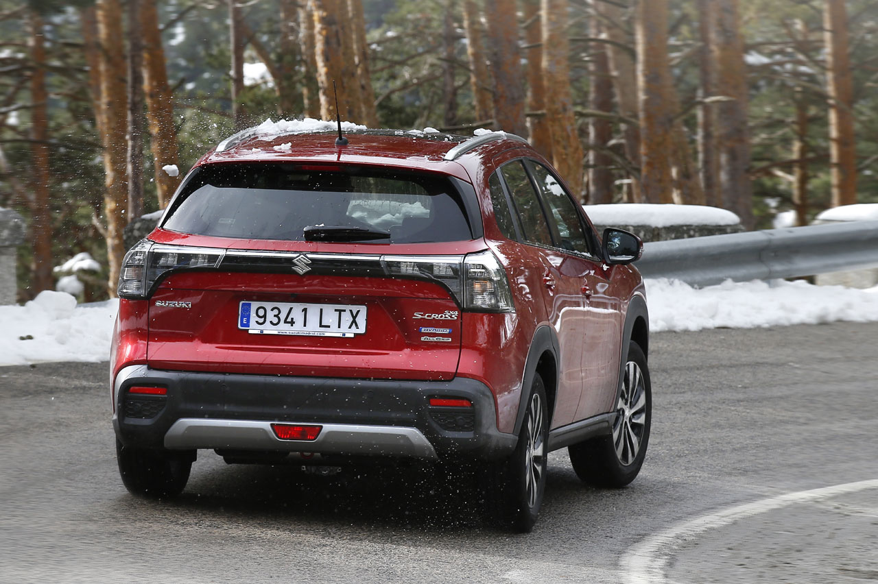 He podido probar este sistema de tracción en condiciones de baja adherencia y me ha sorprendido para bien. Porque incluso con unos neumáticos de corte claramente asfáltico, es capaz de proporcionar un gran nivel de agarre. Más que suficiente para superar zonas de barro, arena o nieve sin dificultades. Esto, unido al cómodo tarado de suspensiones, convierte al Suzuki S-Cross 2022 en un excelente vehículo para circular por caminos o regiones de montaña.