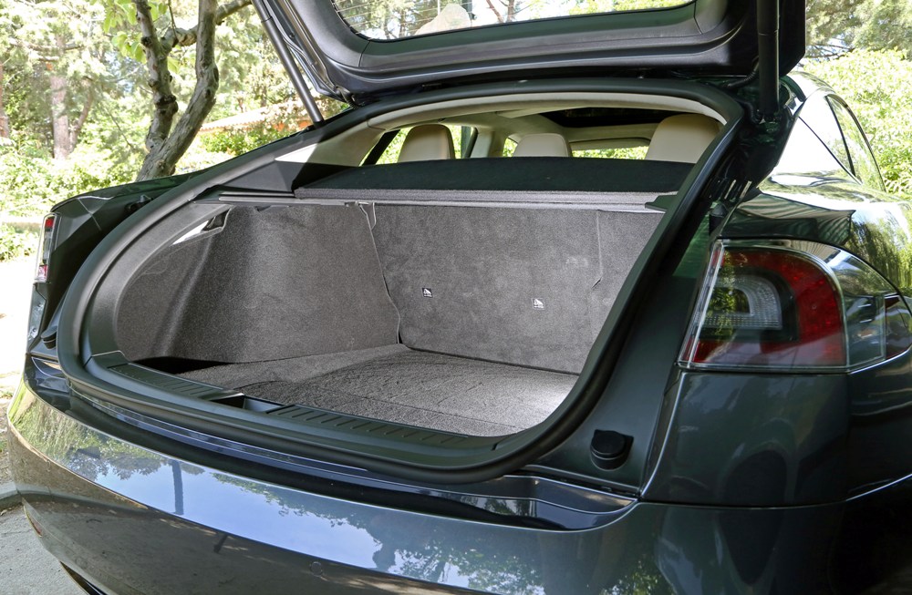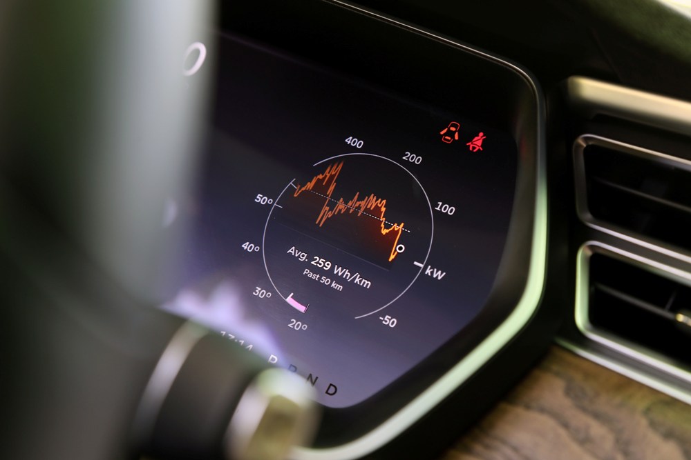 Vamos al interior y encontramos uno de los diseños minimalistas más pronunciados del mercado. En lugar de botones e interruptores para gestionar los diferentes parámetros del vehículo, encontramos una pantalla en disposición vertical de 17 pulgadas y un cuadro de instrumentos totalmente digital que muestra información útil como la navegación, velocidad, autonomía o el uso que estamos haciendo de la energía eléctrica. Los materiales de alta calidad garantizan un habitáculo silencioso y bien rematado, con amplias plazas traseras, aunque con una altura libre al techo algo limitada, eso sí, ampliada gracias al techo panorámico de cristal. Por otro lado, sus dimensiones permiten contar con dos maleteros, uno delantero y otro trasero, donde además se pueden instalar dos asientos para niños, que suman 894 litros de carga.