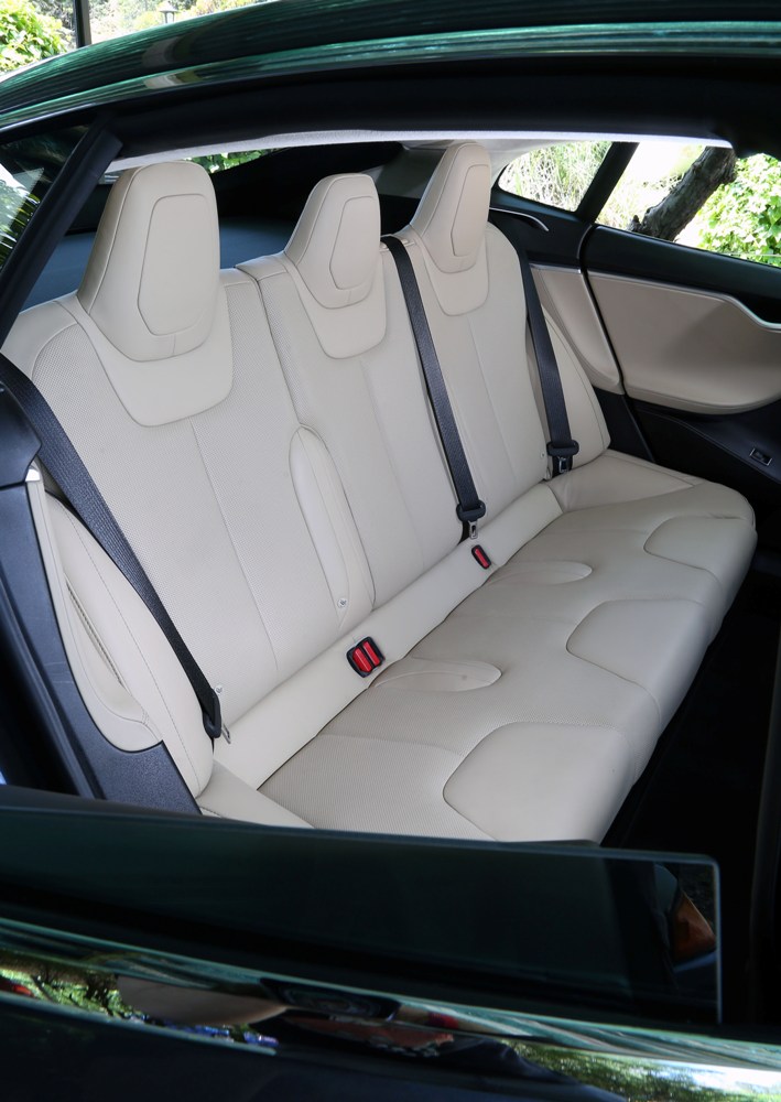 Aunque su diseño apenas ha cambiado en el último lustro, el Tesla Model S presentó el pasado año un ligero lavado de cara que introducía unos rediseñados faros de LED y la eliminación de la pseudo-parrilla por un frontal mucho más limpio y simplificado. El pequeño spoiler de fibra de carbono sobre el maletero, la pronunciada cintura en el tren posterior y las espectaculares llantas de 21 pulgadas, que cubren las pinzas de los frenos Brembo de color rojo, son parte del encanto más deportivo de la berlina, mientras otros detalles propios, como los marcos de las ventanas cromados o las manijas de las puertas retráctiles son parte esencial del ADN Tesla.