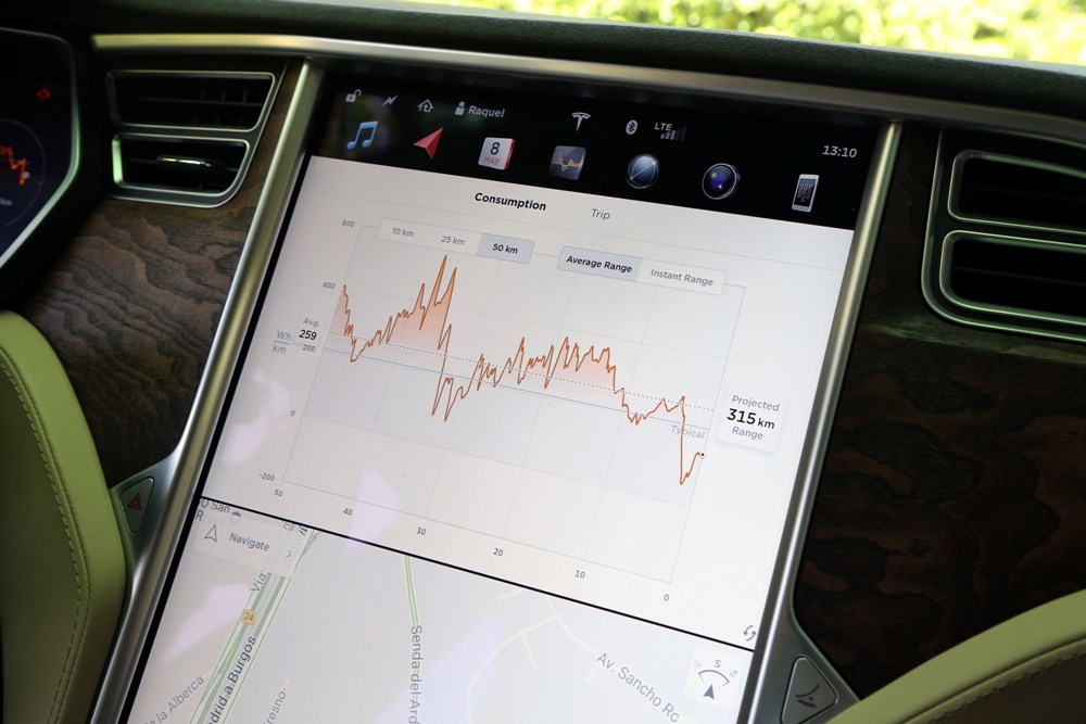 Sin embargo, el Model S P100D que he podido probar es todo lo contrario. A velocidades de autopista no se aprecia diferencia con un coche con motor de combustión, mientras que la buena insonorización de su cabina hace que sea extremadamente silencioso, limitando ampliamente el paso del ruido de rodadura (pese a sus neumáticos de 21 pulgadas) y el sonido propio del aire. Además, entrega el par de manera inmediata (como cualquier otro eléctrico), ideal para adelantamientos, mientras que los diferentes modos de conducción me permiten gestionar el consumo de energía, pese a que el modo normal se denomine ‘Sport’ (muestra de que en Tesla saben que el P100D es un coche prestacional).