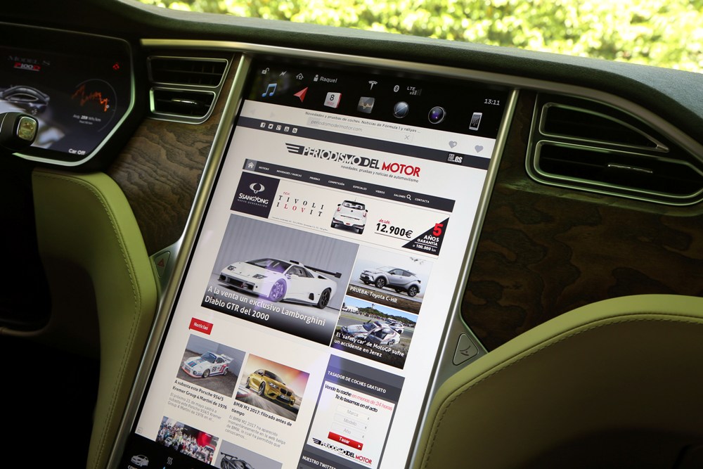 Siguiendo la línea tecnológica del producto más prestacional de Tesla, no puedo pasar por alto la pantalla de 17 pulgadas que gestiona prácticamente la totalidad de los sistemas del vehículo. En ella se puede gestionar la dirección, la suspensión neumática, bloquear o desbloquear puertas y maleteros, las luces, la iluminación ambiental, el climatizador, los asientos calefactables (paquete opcional), la navegación, las cámaras y los diferentes sistemas de seguridad y asistencia al conductor. Por otro lado, el fabricante ofrece a sus clientes un servicio vitalicio gratuito de conexión 4G a Internet para el coche, desde el cual se puede navegar por la red o descargar las últimas actualizaciones para el vehículo. Su uso es muy intuitivo, rápido y sensible al tacto. Sin duda una de las mejores pantallas táctiles del mercado.