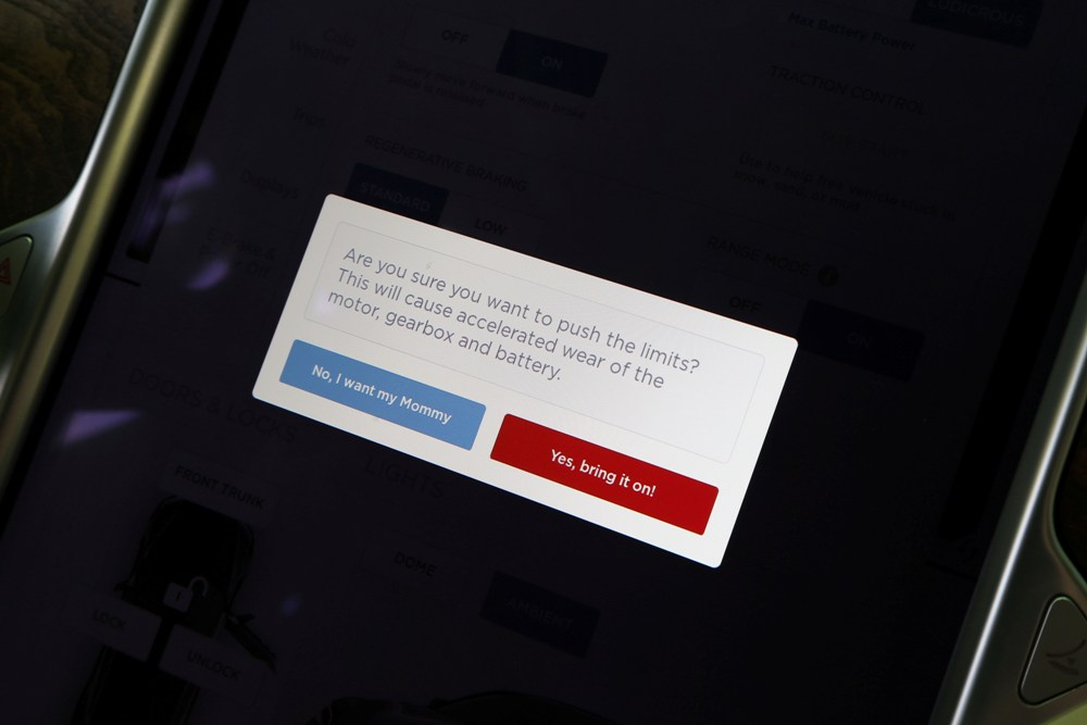 Mantengo pulsada la pantalla durante 10 segundos antes de que un mensaje emergente me avise de que este modo afectará a los motores, la transmisión y la batería, pidiendo nuestro consentimiento explícito. Como si de algo que rozara la ilegalidad se tratara, acepto que lo active. Sin embargo, debo esperar que la batería alcance una temperatura óptima de 50 ºC antes de poder utilizarlo. Por suerte, Tesla sabe que somos impacientes y nos muestra tanto en un gráfico como en tiempo lo que tendremos que esperar. Cogemos temperatura y el sistema nos notifica ‘Ready’ en la pantalla central. Ha llegado el momento, vamos a experimentar una aceleración de cero a 100 km/h en 2,7 segundos. Cuenta atrás y acelerador a fondo. Noto presión en el pecho, los brazos en tensión, me falta el aliento y mi cabeza apoyada en el respaldo del asiento. No puedo casi mover el cuerpo. Parpadeo y he llegado a 100 km/h. La sensación es espectacular y no ha perdido nada de tracción en el intento. Ahora entiendo por qué es uno de los coches que más rápido pasan de cero a 100 km/h.