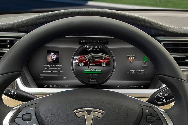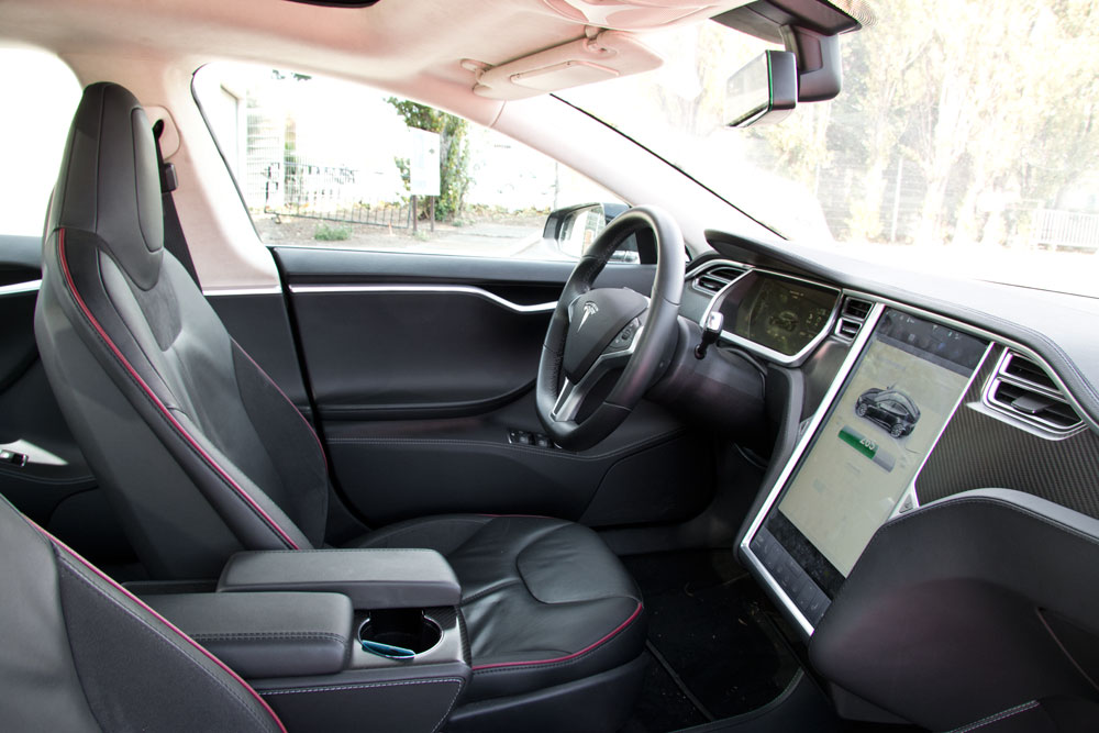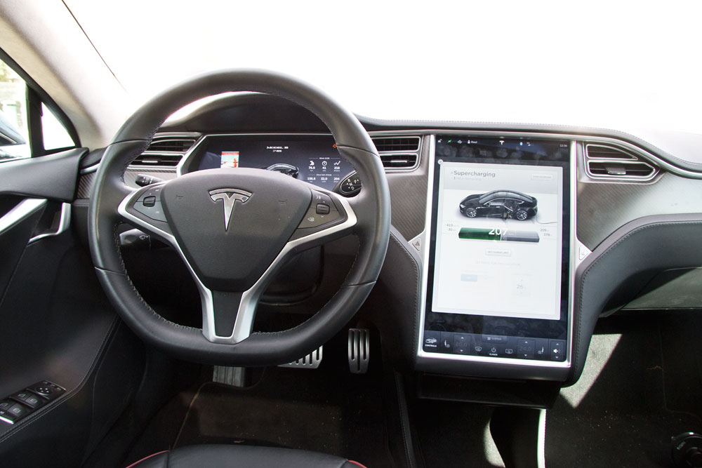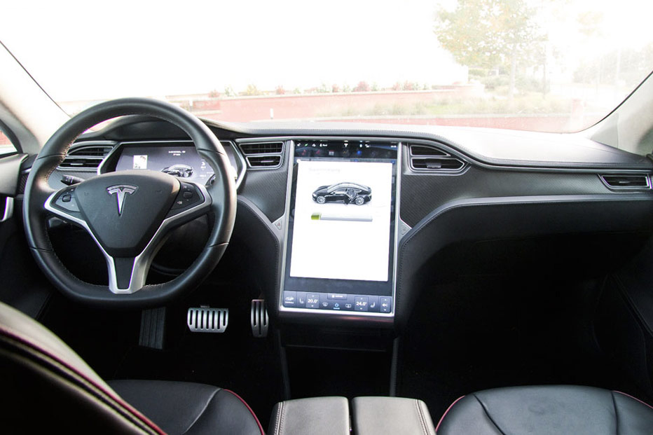 El Tesla Model S es un coche atractivo estéticamente, una berlina con un diseño refinado que combina magistralmente elegancia y deportividad. Las llantas de turbina y un frontal bastante afilado le dotan de ese carácter dinámico. El interior es tecnología pura: una gigantesca pantalla domina todo el salpicadero y acoge todos los mandos del coche: desde el espectacular sistema de entretenimiento online hasta el climatizador, la apertura del techo solar o la altura de los amortiguadores: ¡todo!