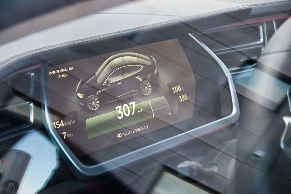 Otra de las cosas que me han impresionado del Model S es su contenido tecnológico en el interior. El sistema de audio está permanentemente conectado a internet y puedes elegir las canciones que deseas escuchar directamente en ‘la nube’ y reproducirlas siempre que quieras. La navegación también está permanentemente conectada y es capaz de actualizarse constantemente para evitar incidentes o atascos. Tiene otras cosas que realmente te dejan alucinado: en los badenes, puedes subir la suspensión para que el coche no roce; cuando lo haces, el sistema reconoce que es un badén y lo guarda en el sistema de navegación: cada vez que pases por allí, automáticamente y sin hacer nada la suspensión subirá para sortearlo. ¡Espectacular!