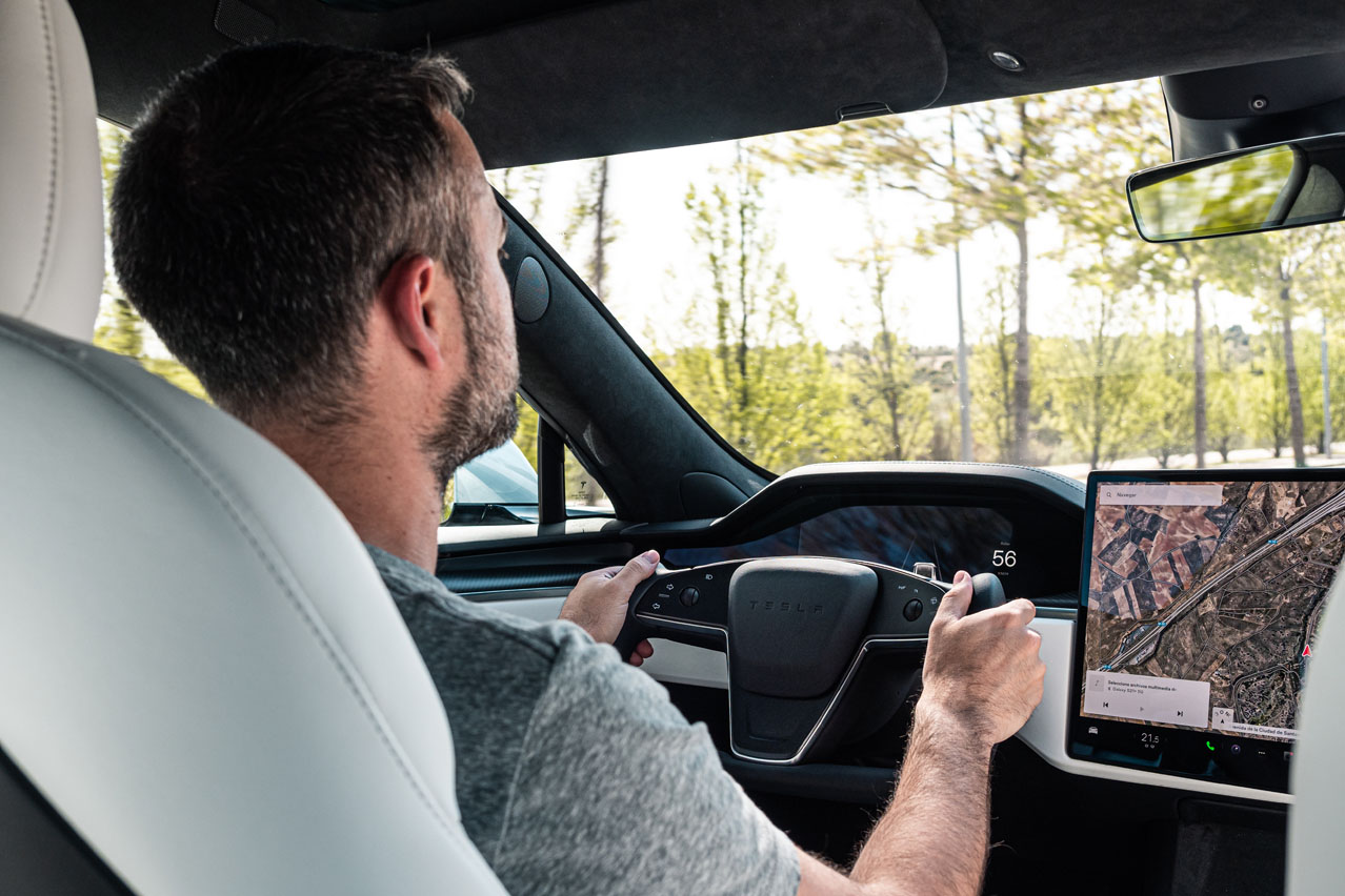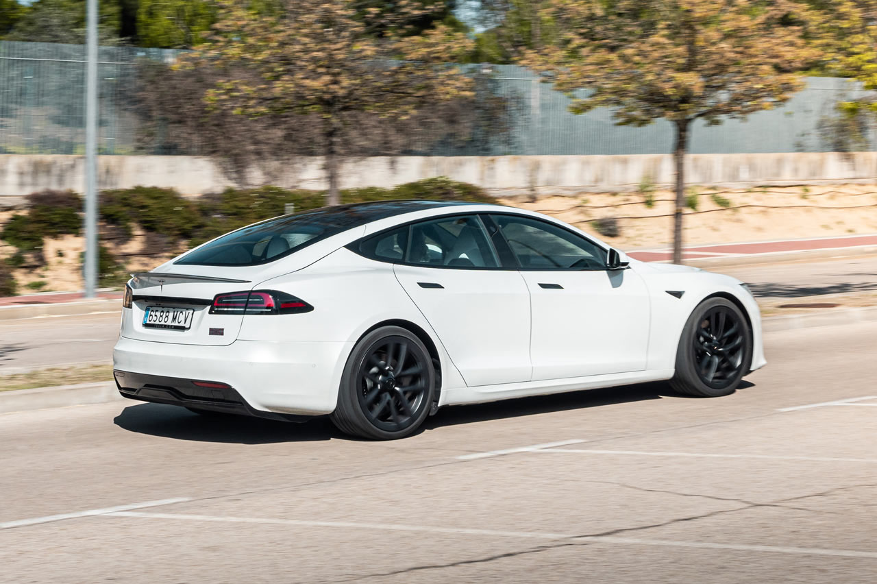 La suspensión filtra bien las irregularidades de la calzada. Es un coche cómodo, que se mantiene firme en curva, pero no llega al gran trabajo del Taycan o el Audi RS e-tron, por ejemplo, que sujeta el coche en los virajes de forma excelente sin comprometer la comodidad de los pasajeros. Pero cabe señalar que Tesla ha mejorado muchísimo en el comportamiento de su coche. Además, se trata de un automóvil que a pesar de su potencia es fácil de llevar.