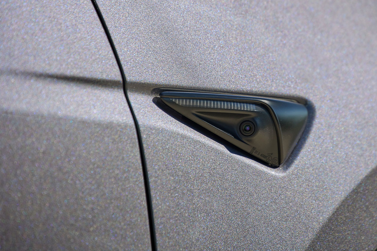 No existe un botón de encendido como tal, como también ocurre en el ID.3 e ID.4, así que pongo la palanca en modo D y comienzo a rodar. Lo primero que me llama la atención es cómo el sistema de infoentretenimiento muestra lo que leen las doce cámaras, los doce sensores ultrasónicos y el radar frontal: camiones, motocicletas, coches, peatones, semáforos, conos, señales verticales...