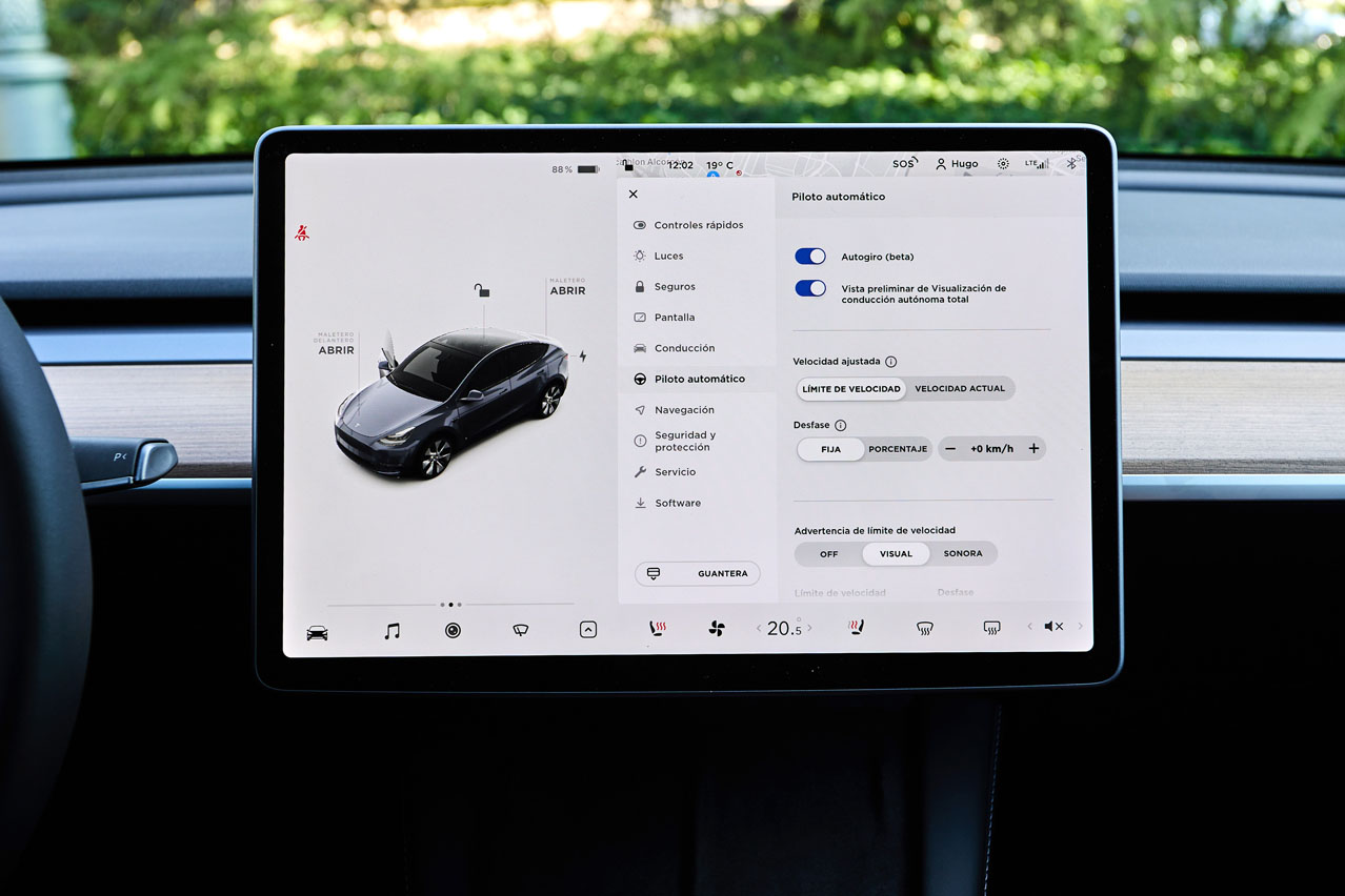 En realidad es un sistema de velocidad de crucero adaptativa que frena cuando tiene un coche delante y acelera cuando no lo tiene y que mantiene, o intenta mantener, el coche en el carril. Vamos, lo que es un nivel de conducción autónoma de nivel 2, algo con lo que cuentan casi todas las marcas, incluso generalistas y en coches de 15.000 euros. Es cierto que durante la prueba del Tesla Model Y Gran Autonomía hemos comprobado que funciona bastante bien, aunque creo que no es el mejor del mercado.