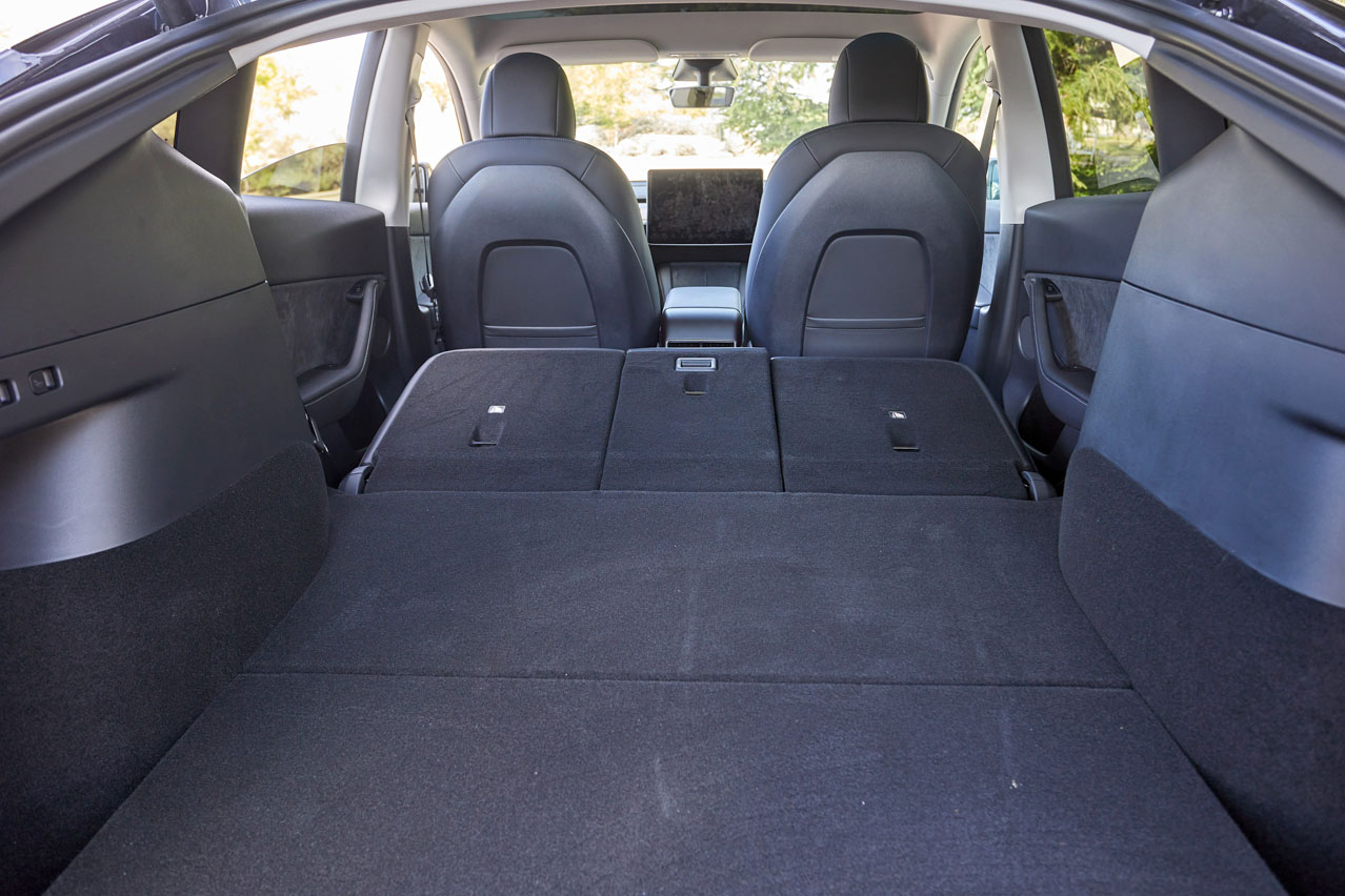 Y para amplio, bueno, enorme, su maletero. Según los datos oficiales cubica 854 litros. ¡Espera! Al no llevar ningún tipo de bandeja o cortinilla, Tesla lo mide hasta el techo, por lo que la cifra no es comparable con otros vehículos de la competencia. Sí, has leído bien: no lleva bandeja o cortinilla que cubra los bultos del maletero; la luna tintada hace un buen trabajo, pero no lo esconde por completo.