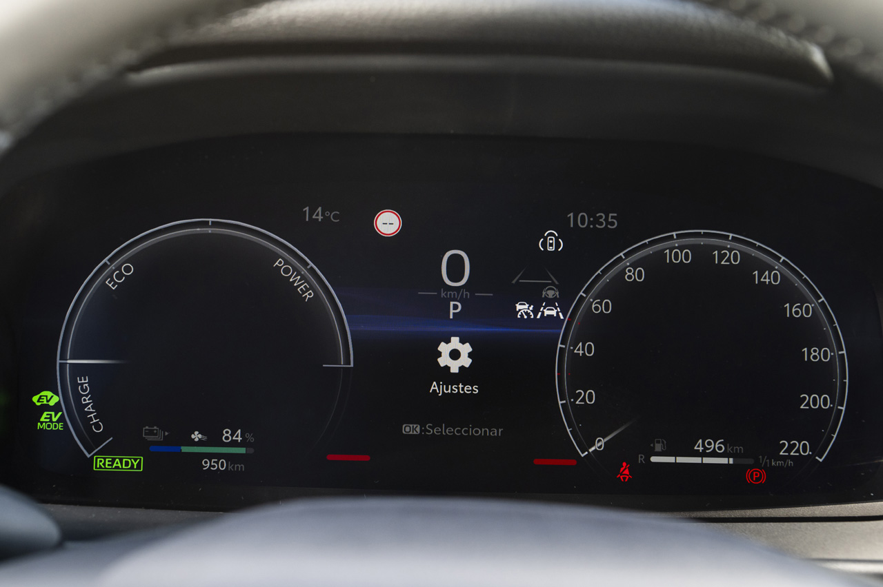 Me gustan mucho las funciones predictivas del sistema de propulsión. Porque tienen en cuenta cuestiones como que te aproximes a una curva o rotonda o que el coche que te precede frene para incrementar la regeneración del motor eléctrico y por ende reducir tu velocidad. Esto hace que tengas que pisar menos el freno aprovechando además la energía generada para recargar la batería.