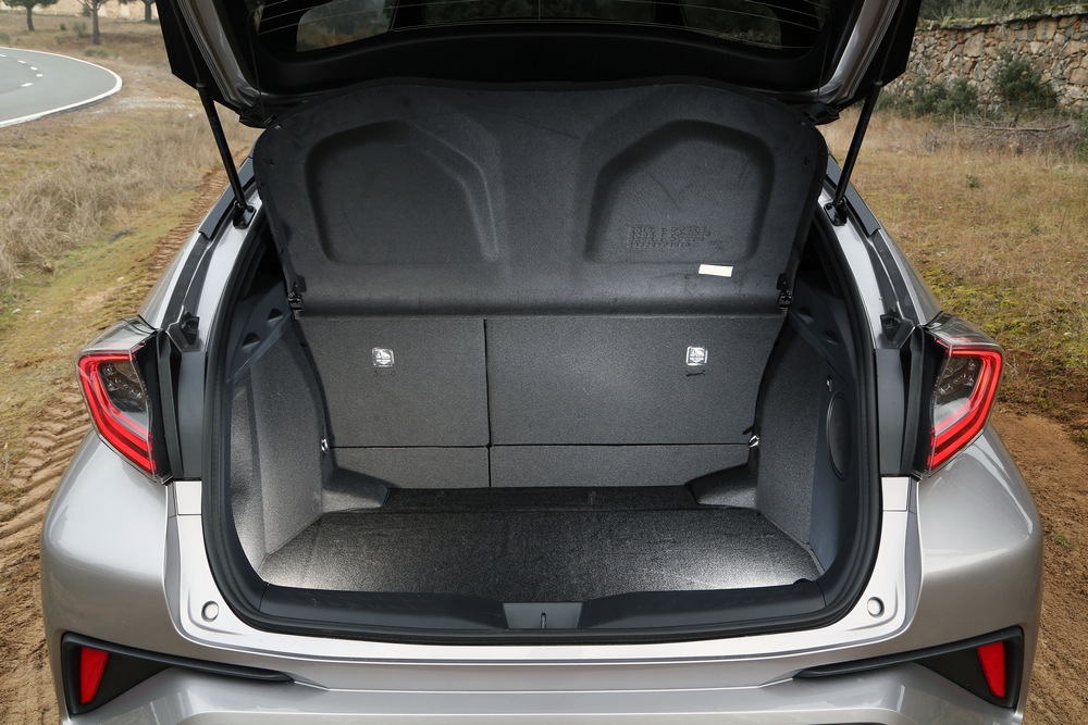 Con sus 4,36 metros de longitud, el C-HR es 1,7 cm más corto que un Qashqai y 0,5 cm más largo que un Niro. Si atendemos a la batalla, que es la que en mayor medida determina la habitabilidad y la capacidad de carga, veremos que el Toyota es ligeramente más pequeño que los productos de Nissan y Kia. Esto, unido a las formas de su carrocería, que tiene una caída de techo muy marcada, hacen que el C-HR sea el que menos maletero ofrece de los tres: 377 litros frente a los 430 del otro japonés y los 401 litros del surcoreano. Lo bueno es que las formas del maletero son muy regulares, lo que sin duda ayuda a que podamos aprovechar todo el espacio disponible.