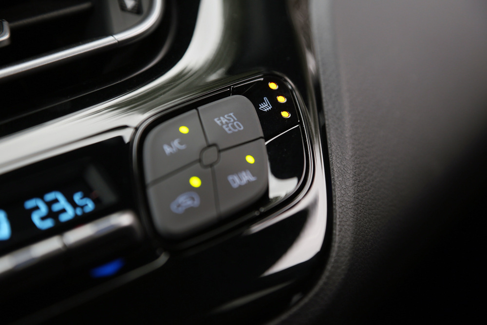 Y ya que señalo ese elemento como parte de la dotación de serie, que por cierto tiene un funcionamiento intuitivo y fluido, quiero remarcar que incluso en el acabado más bajo que ofrecen el equipamiento es muy completo, característica que se incremente a medida que subimos de nivel de terminación. Independientemente de la versión escogida, el nuevo Toyota C-HR viene de serie con avisador de cambio involuntario de carril, control de crucero adaptativo, climatizador de dos zonas, sensores de lluvia y luminosidad, retrovisor interior fotosensible y exteriores calefactables y plegables eléctricamente, sistema de acceso y arranque manos libres o una pantalla a color de 4,2 pulgadas en el cuadro de instrumentos, entre otros.