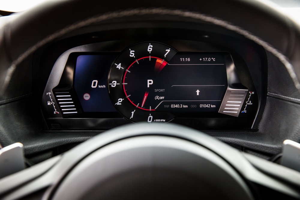 Una vez visto por fuera, abro la puerta y subo al habitáculo, donde me encuentro con un espacio que de no ser por el logo de Toyota en el volante, podría pasar por el del BMW Z4. No hay prácticamente nada que lo diferencie de su ‘primo’ alemán y aunque me hubiera gustado que contara con un diseño específico como en el exterior, tampoco es algo malo. Sobre todo porque BMW sabe crear interiores bien rematados, orientados al conductor y que transmiten solidez; y el del Supra no es una excepción.
