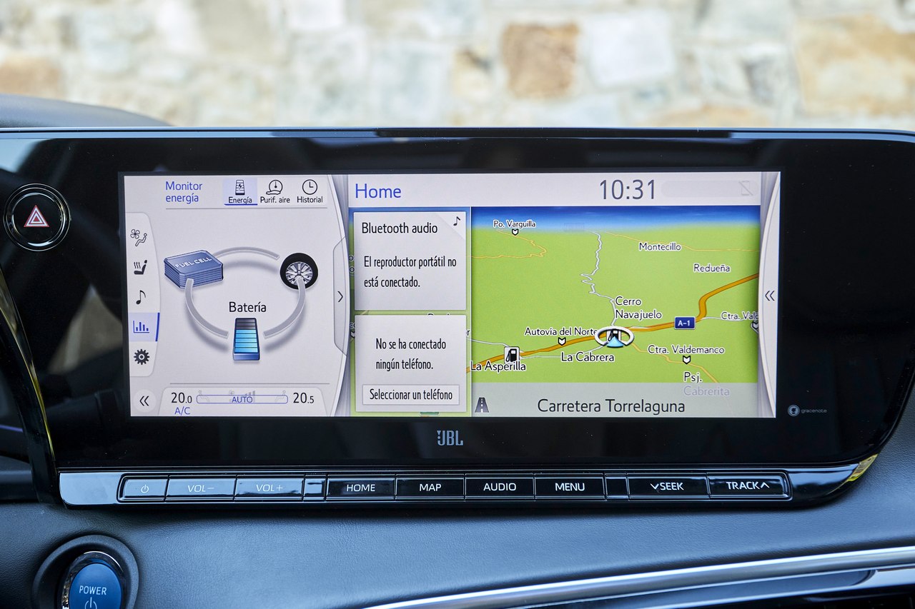 Cuando tiene energía suficiente, el sistema usa la batería para alimentar el motor eléctrico al, por ejemplo, iniciar la marcha. A velocidades de crucero constantes es la pila de hidrógeno la que se encarga de generar energía. Y cuando demandamos más capacidad de aceleración, el sistema combina ambas fuentes para proporcionar hasta 182 CV de potencia y 300 Nm de par.