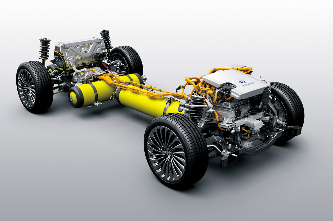 Con el cambio de posición de la pila de hidrógeno y el uso de la plataforma GA-L, el motor eléctrico pasa de estar sobre el tren delantero a situarse sobre el trasero. La batería de tracción, una pequeña unidad de iones de litio con 1,24 kWh de capacidad proveniente del Lexus LS, se sitúa entre el respaldo de los asientos traseros y el maletero. Este acumulador se utiliza para capturar energía durante las retenciones (aunque también se puede cargar con la pila de hidrógeno).