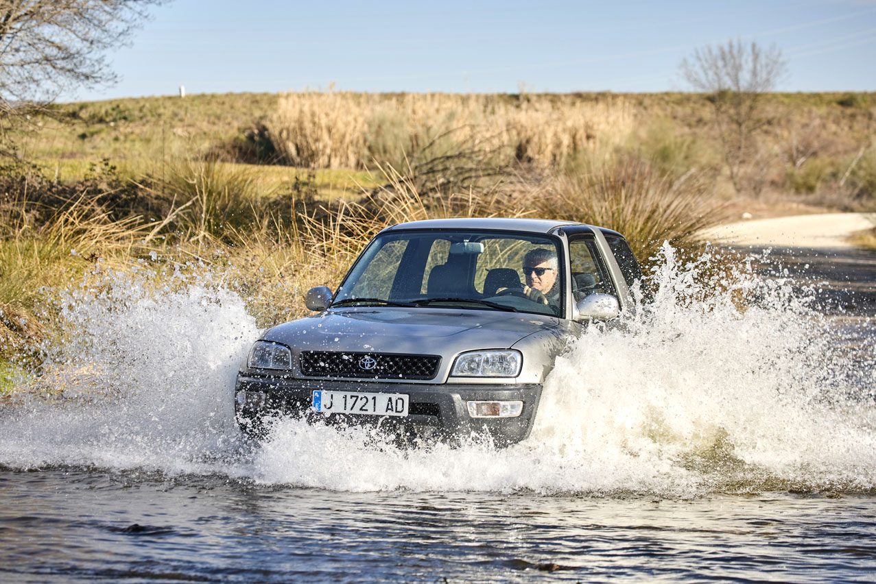 El RAV4 tiene aspecto de todoterreno, pero es verdad que no llega a los niveles de eficacia que podría tener por ejemplo un Suzuki Vitara de la época, dotado de reductoras y de un chasis en teoría mejor preparado para el uso fuera del asfalto. Es verdad que el RAV4 no se concibió para un uso todoterreno radical ni para actos heroicos en el campo, si por ello entendemos subir una trialera, meterte en el barro hasta la cintura o acometer un cruce de puentes salvaje.