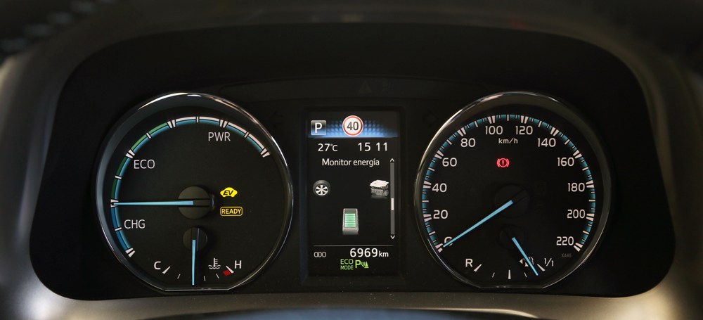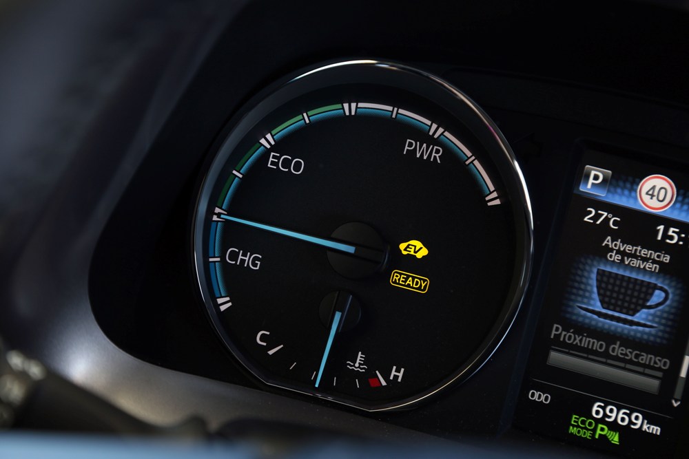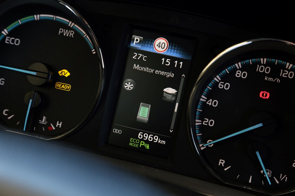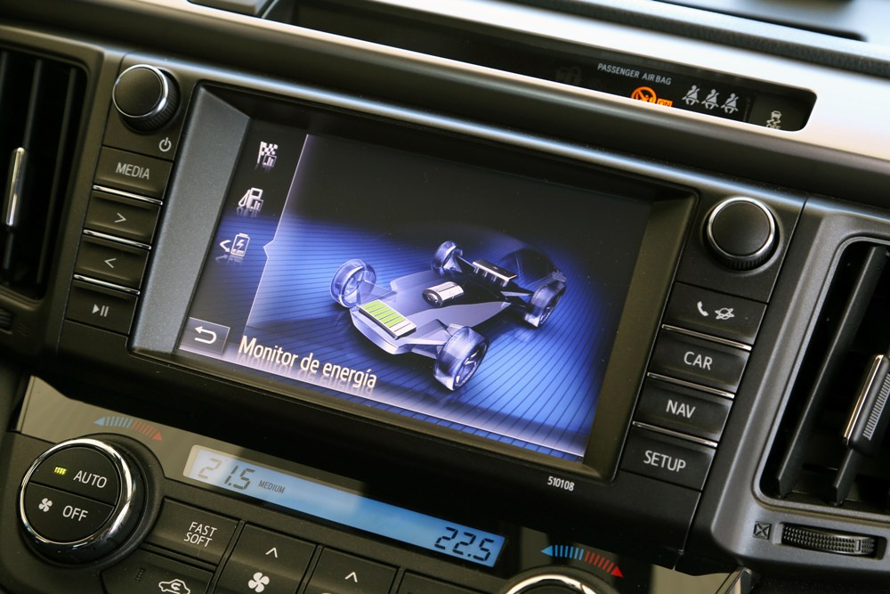 Como tal, el Toyota RAV4 Hybrid 2016 que he podido probar ofrece un modo EV y otro ECO, además de un tercer modo Sport que deja a un lado la economía de combustible. Combinados los dos primeros, hasta 50 km/h, el RAV4 Hybrid es capaz de circular en modo eléctrico, siempre que tengamos carga en la batería, la cual se recarga mediante tres modos: utilizando la frenada regenerativa, mediante inercia (aprovechando bajadas o llaneando sin pisar el pedal del acelerador) o a través del motor de gasolina, el cual actuará a modo de generador además de sustentar el vehículo. Circular en modo totalmente eléctrico nos facilitará las cosas en tramos urbanos o zonas muy limitadas y/o congestionadas, aunque deberemos ser muy sensibles con el pedal del acelerador si no queremos que se active el motor de combustión.