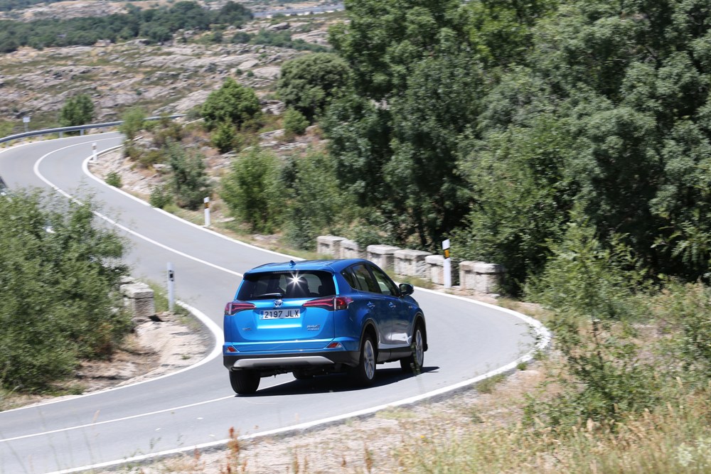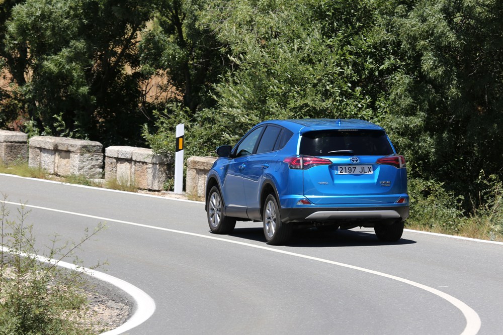 A la cuestión que planteaba al principio de la prueba sobre si se puede viajar con un híbrido, la respuesta es claramente sí, tanto por consumos como por las sensaciones que transmite, ya que al volante del Toyota RAV4 Hybrid (recorrí trayectos de hasta 400 kilómetros) he podido comprobar de forma satisfactoria el tacto de la suspensión, el cual otorgar cierto grado de confort en viajes largos, así como la poca sonoridad que accede al habitáculo una vez en marcha y una dirección firme que ofrece buen feeling con las ruedas delanteras. Por el contrario, el tacto del freno resultó algo esponjoso, mientras que el peso de la unidad (1.700 kg) se dejaba notar en algunas zonas más reviradas.