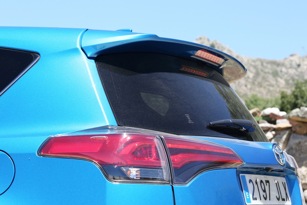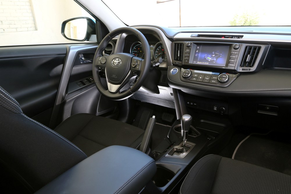 El Toyota RAV4 Hybrid 2016 es la primera generación del popular crossover que se somete a la tecnología híbrida, aunque estéticamente apenas se diferencia del modelo estándar. El todocamino de Toyota presenta una longitud de 4.605 mm, una anchura de 1.845 mm y una altura de 1.675 con una distancia entre ejes final de 2.660 mm. Esto permite que disponga de una capacidad de carga total con la segunda fila de asientos abatida de 1.633 litros, mientras que el maletero es de 501 litros, no de los más grandes de su categoría debido a que en el fondo esconde la batería del coche. A diferencia del Toyota RAV4 normal, por así definirlo, la variante híbrida presenta un cuadro de instrumentos sin cuentarrevoluciones (en su lugar encontramos un medidor de energía y recarga) y el sistema de infoentretenimiento incluye funciones ampliadas, mientras que el exterior se beneficia de placas de identificación propias y logotipos con un toque azul intenso.
