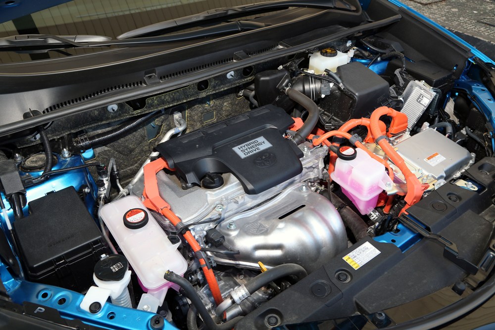 Entrando en materia encontramos el sistema de propulsión híbrido de la compañía, el conocido Hybrid Synergy Drive de Toyota, el cual está compuesto por un motor de gasolina atmosférico de cuatro cilindros y 2.5 litros que ofrece una potencia de 152 CV y 206 Nm de par a 4.400 rpm, asociado a un propulsor eléctrico de 143 CV que ofrece 270 Nm de par desde el primer momento y que es alimentado por una batería de níquel de 1,6 kWh. En conjunto, el sistema híbrido envía 197 CV directos a una transmisión CVT de seis velocidades que está conectado al asfalto a través de la tracción delantera o total.