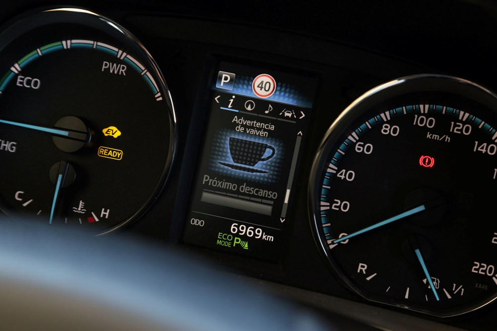 Sin el modo EV activo, pero siempre llevando el ECO Mode enchufado, el RAV4 Hybrid buscará utilizar el modo totalmente eléctrico la mayor parte del tiempo. Con algo de picaresca y probando el vehículo en diferentes condiciones, he podido comprobar que se puede circular incluso a 80 km/h utilizando el motor eléctrico, aunque esto agotará la pequeña batería rápidamente y debemos ser lo más sensibles posibles con el acelerador. Así que olvídate de adelantar o acelerar, digamos, de forma natural, ya que desactivarás esta función eléctrica. Además, el sistema híbrido es bastante independiente y resulta un pelín tedioso cuando queremos circular en modo eléctrico y éste nos activa el motor de gasolina sin darnos opción.