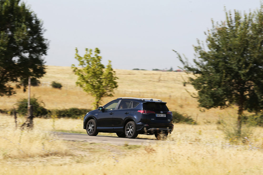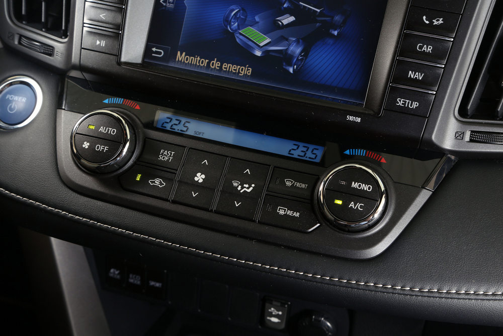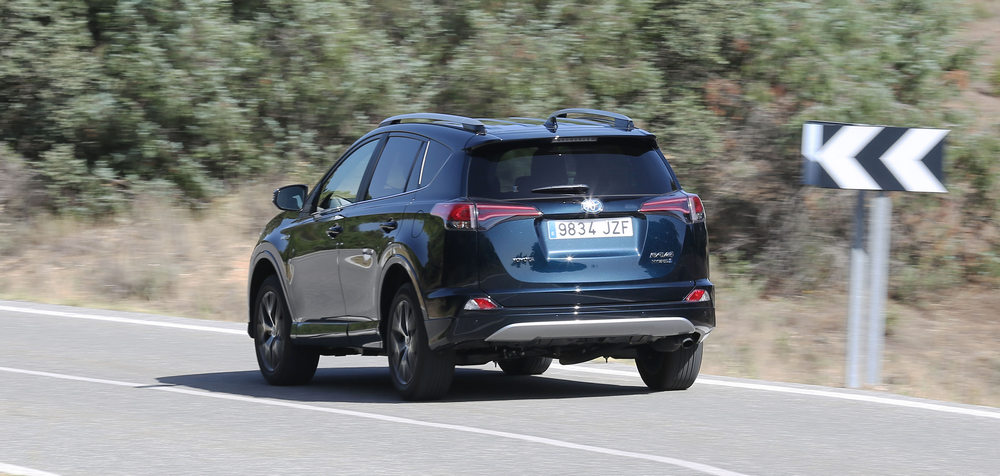 La versión Feel! Edition del RAV4 que pruebo destaca por su extra en equipamiento. El RAV4 Hybrid 2017 incluye cristales traseros oscurecidos, faros led, el Pack Toyota Safety Sense, compuesto por el sistema de seguridad precolisión con detección de peatones, control de crucero adaptativo, reconocimiento de señales de tráfico, control inteligente de luces de carretera y avisador de cambio involuntario de carril. Además, está equipado con el portón automático con apertura y cierre eléctrico, el sistema de entrada y arranque inteligente, la cámara de visión trasera y el climatizador bizona. Como verás no le falta ningún detalle.