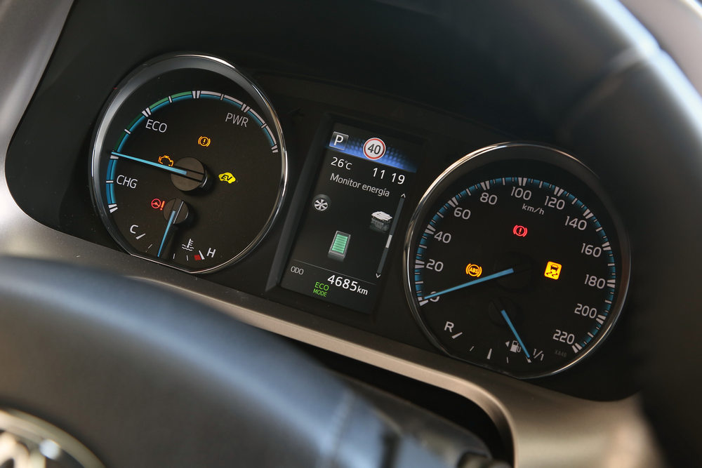 Ya estoy dentro y me dispongo a arrancarlo. El sistema híbrido de la unidad que estoy poniendo a prueba es progresivo lo que aporta una comodidad extra. Hay que destacar el gran trabajo de insonorización del que hace gala el RAV4 Hybrid (prueba). Sus 197 CV te invitan a disfrutar de una conducción sosegada. El motor de gasolina es un 2,5 litros de cuatro cilindros en línea de ciclo Atkinson, esto lo hace más eficiente a la hora cargar las baterías, que tienen una capacidad de 1,59 kWh.
