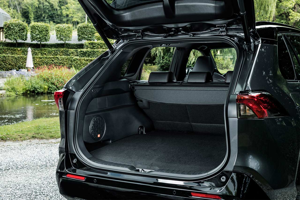 A nivel de imagen, el Toyota RAV4 Plug-In Hybrid de esta prueba se diferencia poco de sus hermanos de gama. No obstante, sí que conviene destacar algunas cosas. Como una rejilla frontal y unas llantas específicas, una moldura metalizada en el paragolpes o ciertos detalles en negro brillante tanto delante como detrás. Por cierto, las salidas de escape están a la vista: punto positivo.
