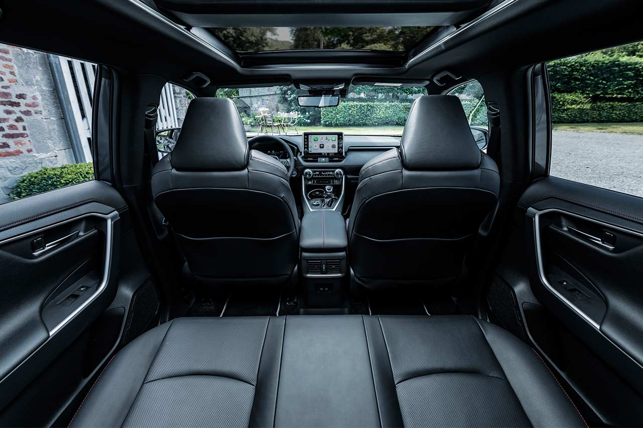 De todas formas, al igual que en la mayoría de modelos con este tipo de sistema de propulsión y una potencia elevada, lo que más llama la atención del Toyota RAV4 híbrido enchufable de esta prueba es el empuje inicial. Nada más rozar el pedal derecho el ‘chute’ de potencia eléctrica te deja literalmente pegado al asiento. Sales disparado.