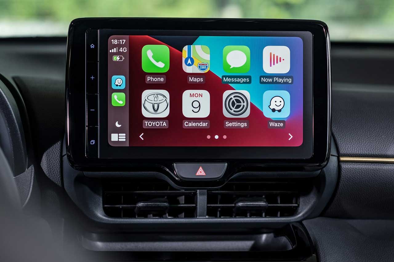 La consola central es extraña por diseño, pero muy funcional. Las toberas están en un entrante, bajo la pantalla, y esto deja espacio para poner ahí algún objeto como las llaves, por poner un solo ejemplo. El display multimedia de nuestra prueba del Toyota Yaris Cross es el de 9 pulgadas, y cuenta con un nuevo sistema de infoentretenimiento mejorado tanto por rapidez como por gráficos.